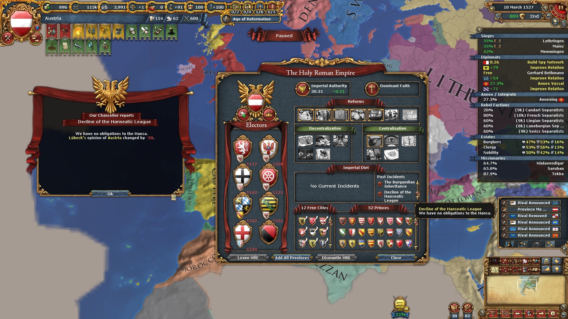 帝国インシデントの「ハンザ同盟の衰退(Decline of the Hanseatic League)」が発生しました。