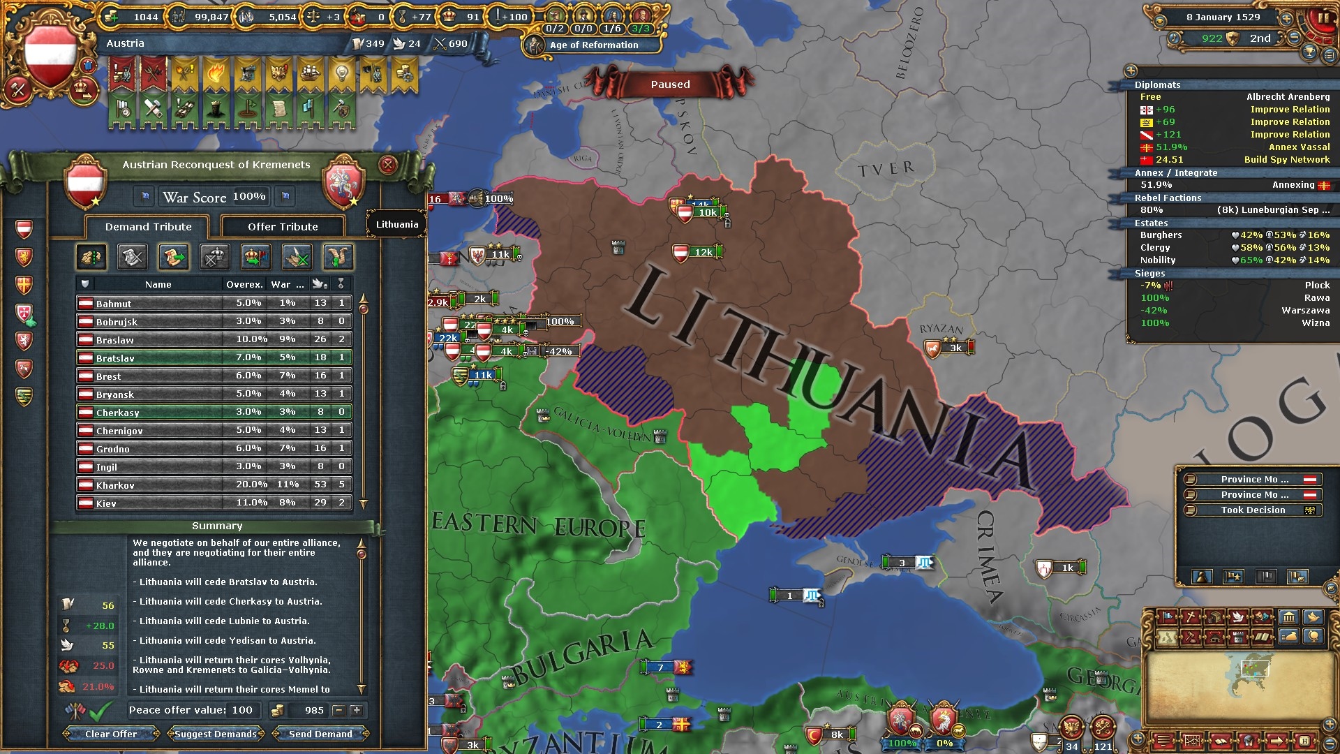 ということで対リトアニア、フランス、オスマン戦用に属国を解放させました。