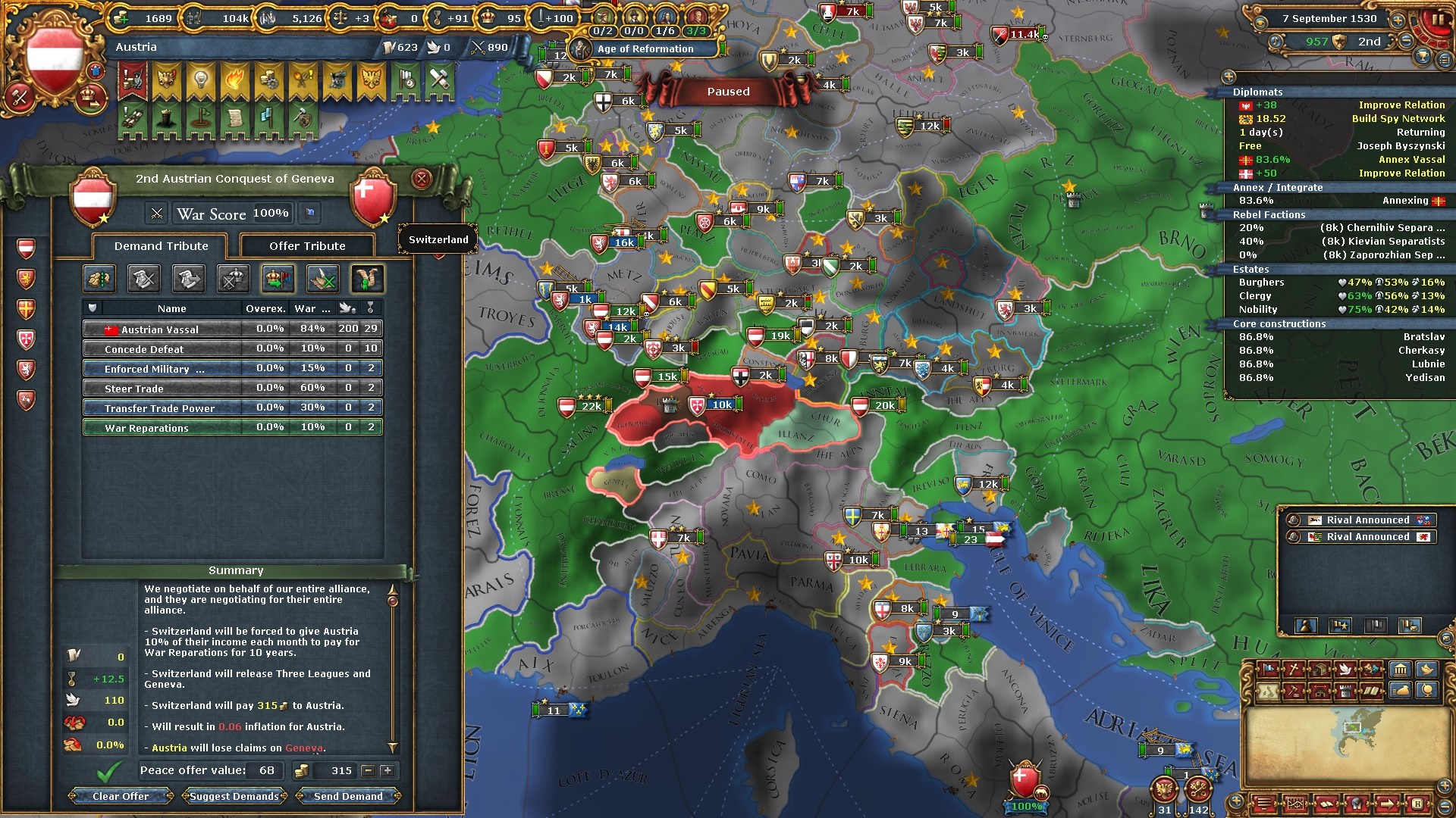 幸いなことに1領土国家ジュネーブのコア州だったので復活させてから強制改宗させます。
