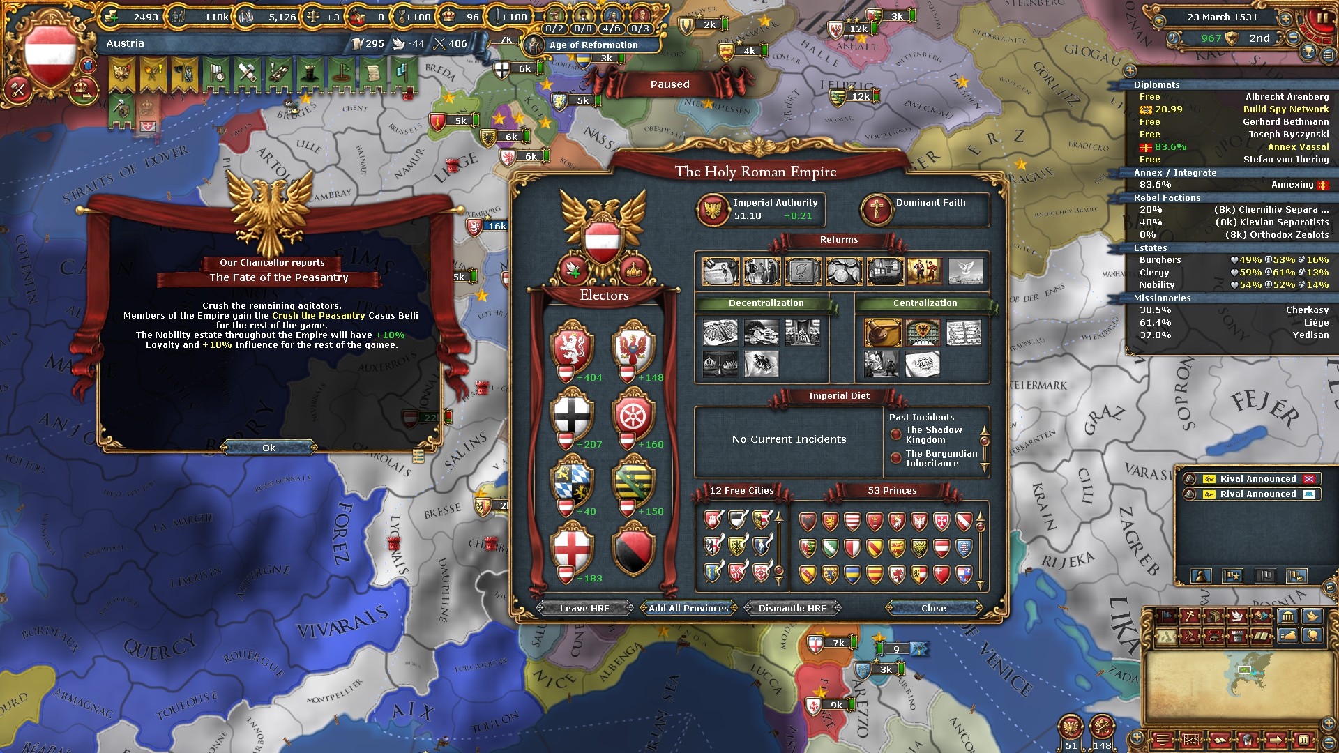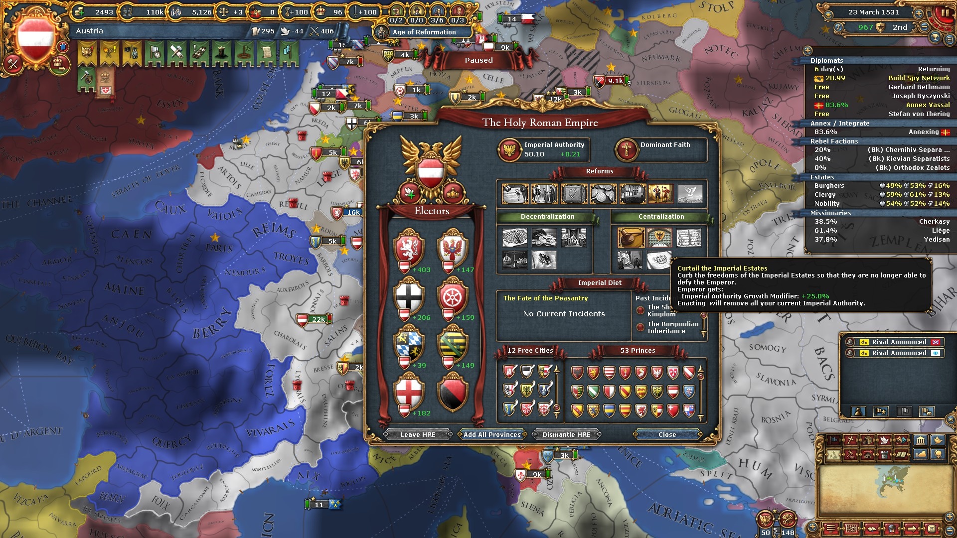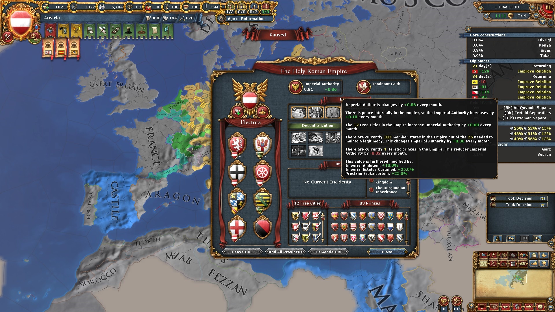 帝国諸侯の数が大きく増えたので、帝国権威の自然増加も増えました。