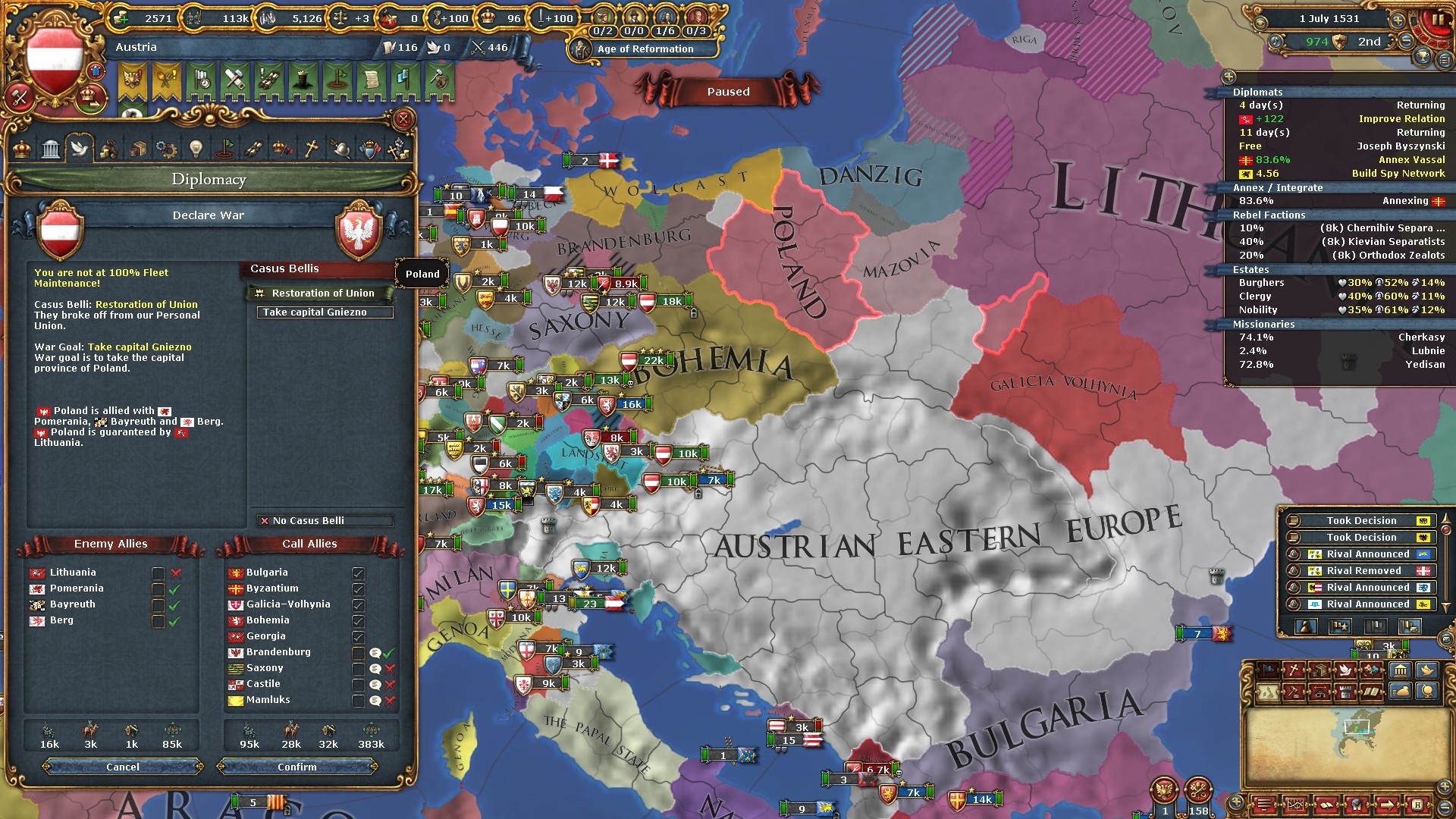 ミッション「ガリツィアの征服(Conquer Galicia)」の報酬でポーランドに対する同君CBが得られます。