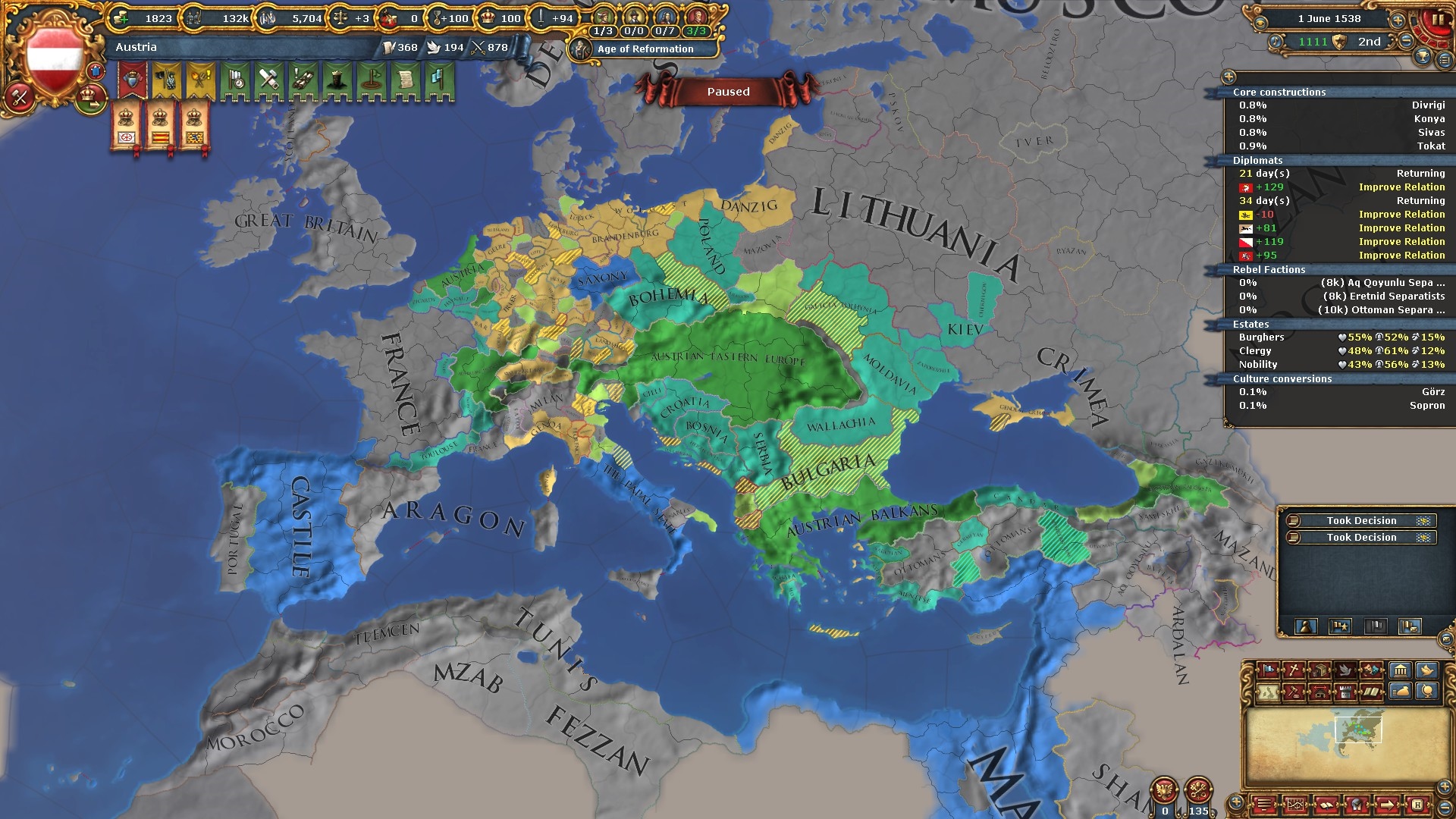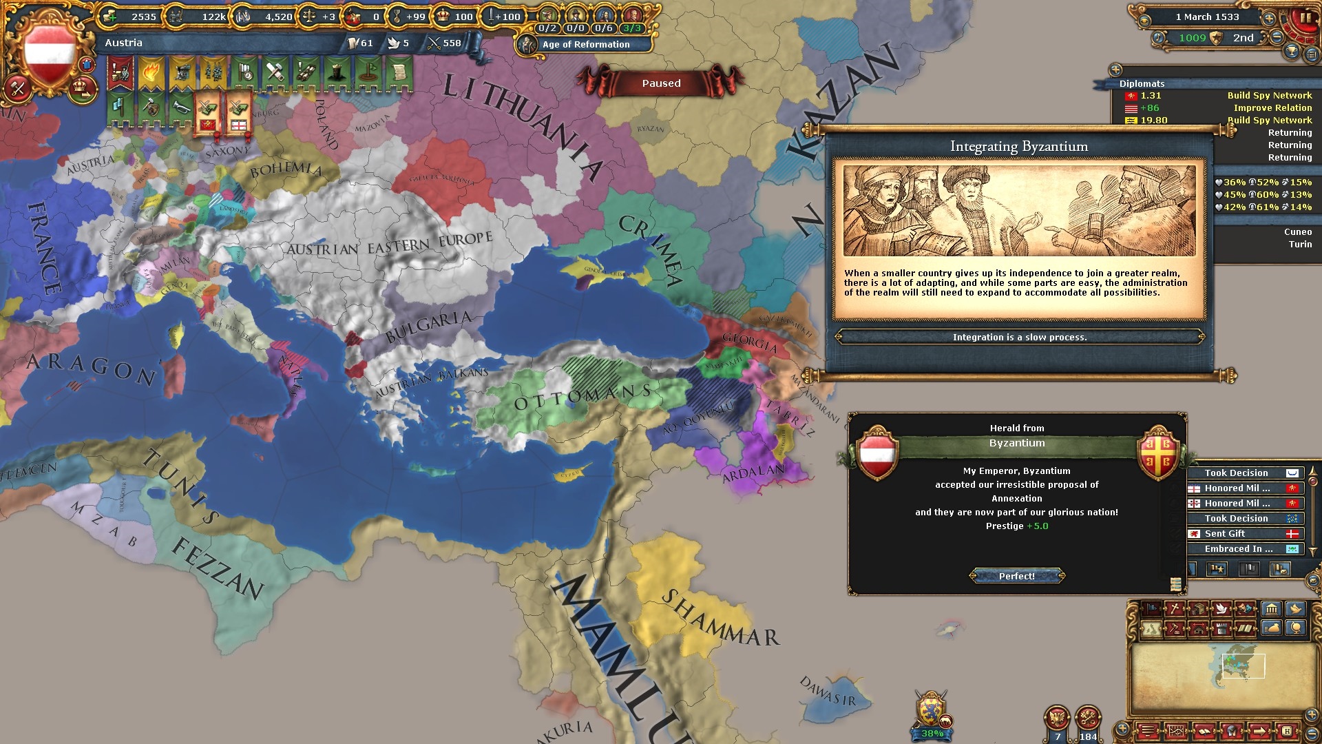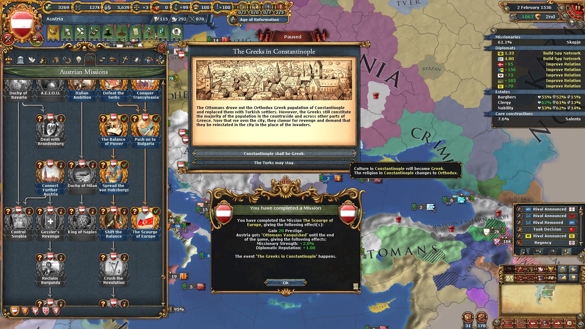 オスマンをバルカン半島より駆逐したので、ミッション「ヨーロッパの災い(The Scourge of Europe)」を達成しました。