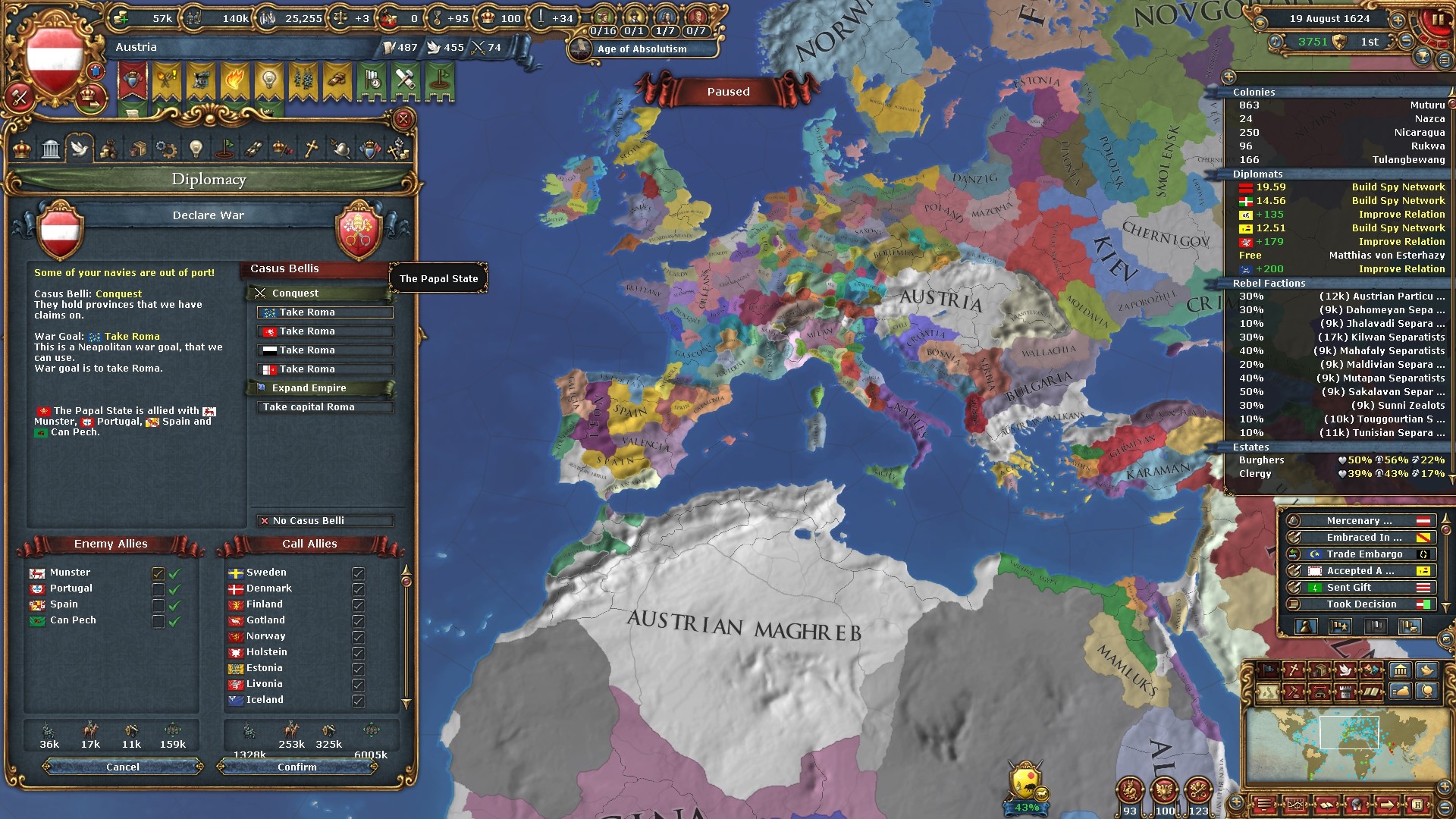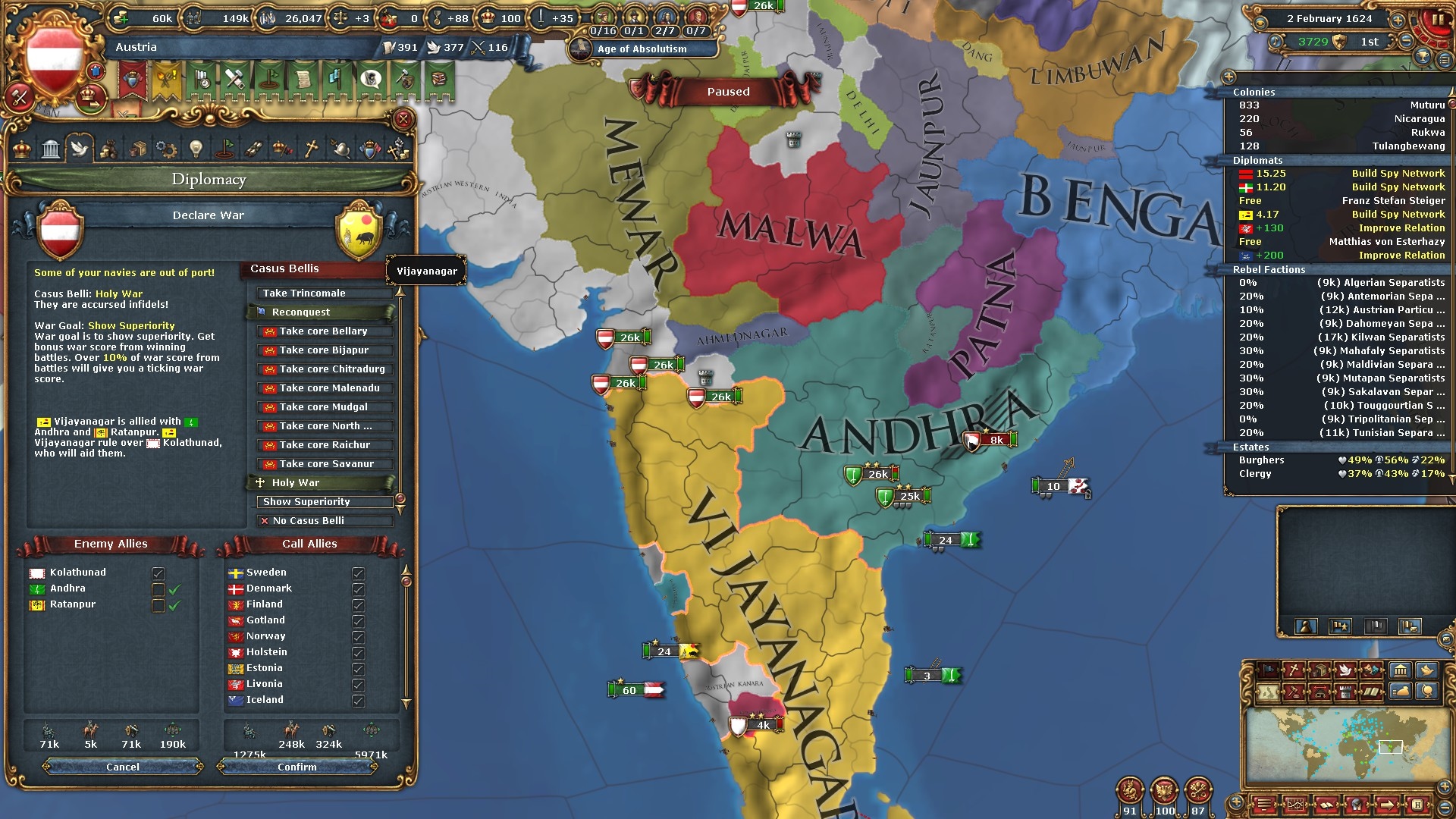 ポルトガル戦に付いてきたカルンドウェを武力属国化しました。