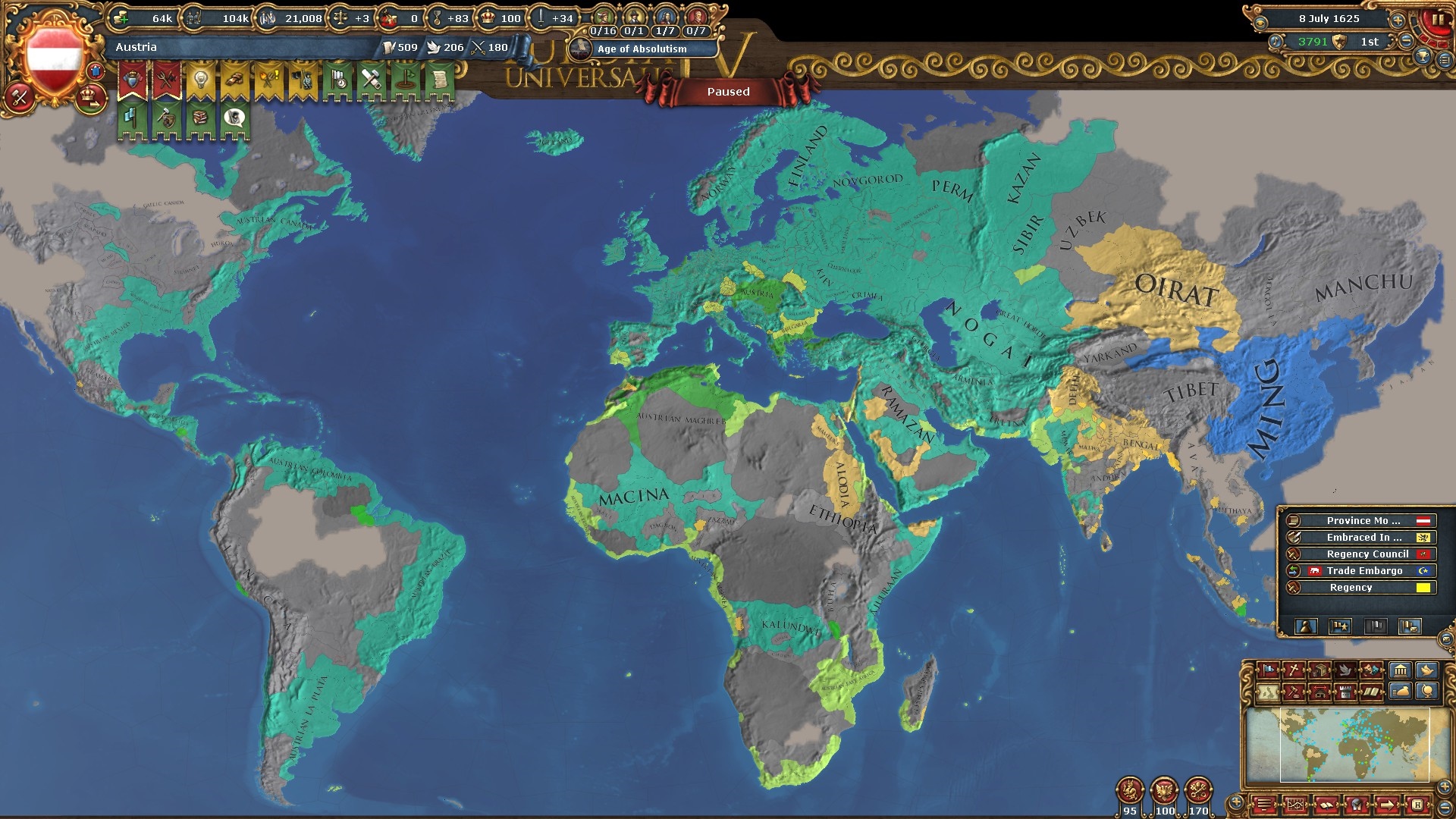 ファンネルプレイでは属国に領土をほとんど投げているので自治領の割合が低いままです。