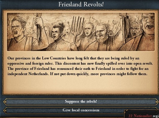 F: 全く、前回のAAR終了から50年近くまともな拡張もできないどころか、反乱軍が沸きすぎて人的資源が4桁に達することすら無かった。史実になぞらえてこれを三十年戦争と名付けよう。