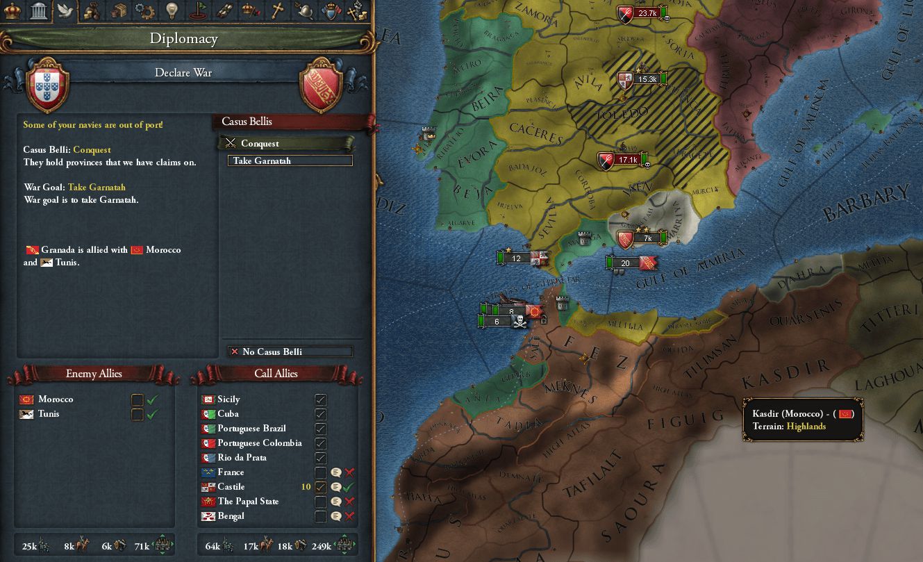 MoroccoはGranadaを属国化していた。リベンジマッチにCastileも燃えている🔥 Morocco軍はCastileに任せて、Portugal海兵隊はJolofとMaliへ向かうことにした