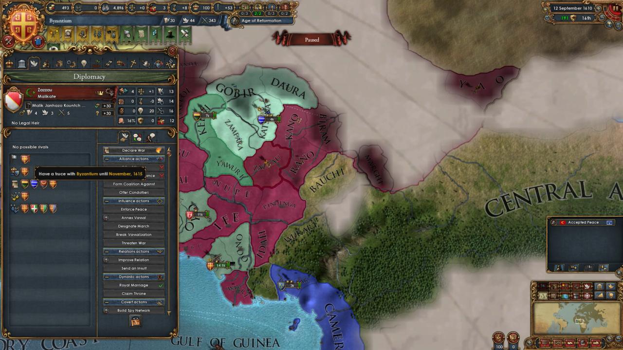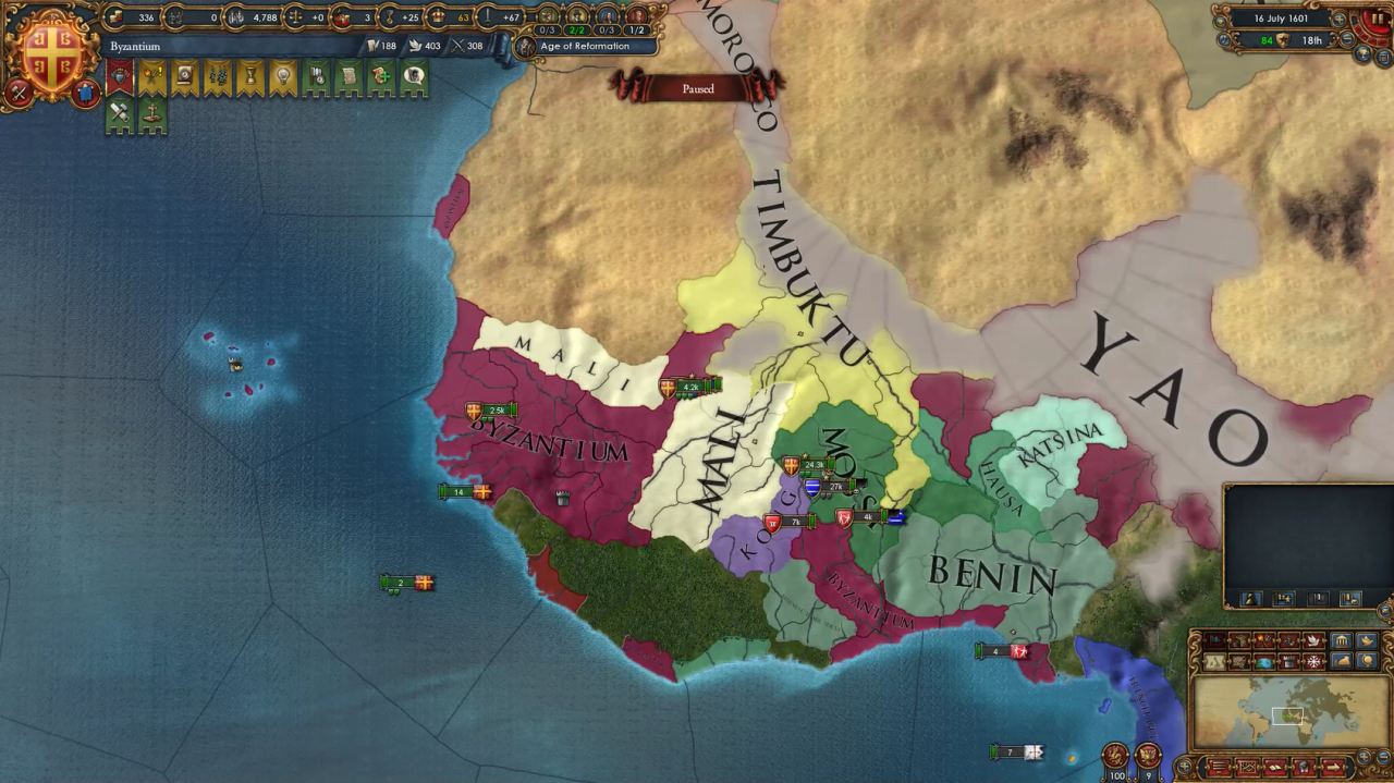 Quantityアイデアをコンプしたことにより西アフリカどころかアフリカ大陸全体を見てもオスマン以外敵となるような勢力がいない状況となりました。