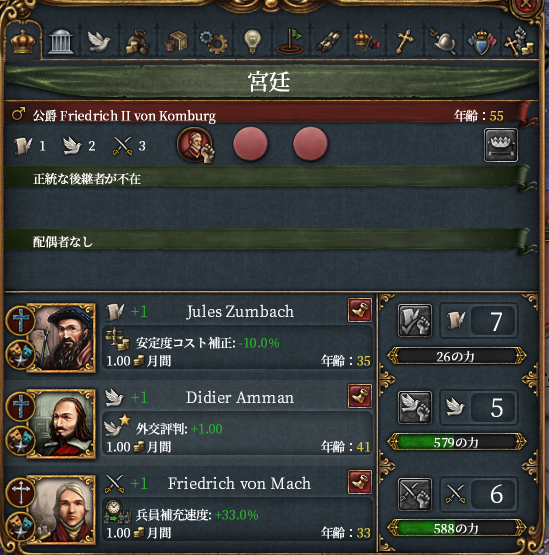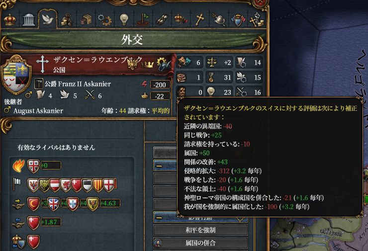 トリーア、サヴォイ、ケルン、ミュンスター、ザクセンを滅ぼした。おっきくなった。