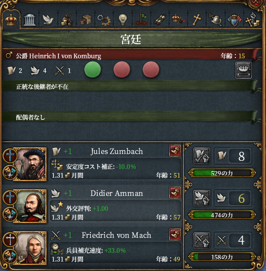 変わりゆく宮廷、ヴァーナー君はかなり優秀です。狩りとか好きなのかな?