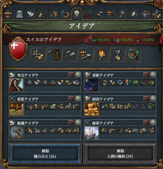 スイス卿「だ、大スイス帝国だと!?海軍?何を言っているスイスは内陸の小公国なんだぞ!?ふざけやがって。2手目で革新アイディア*1とっちまったからやるしかねえじゃねえか!」