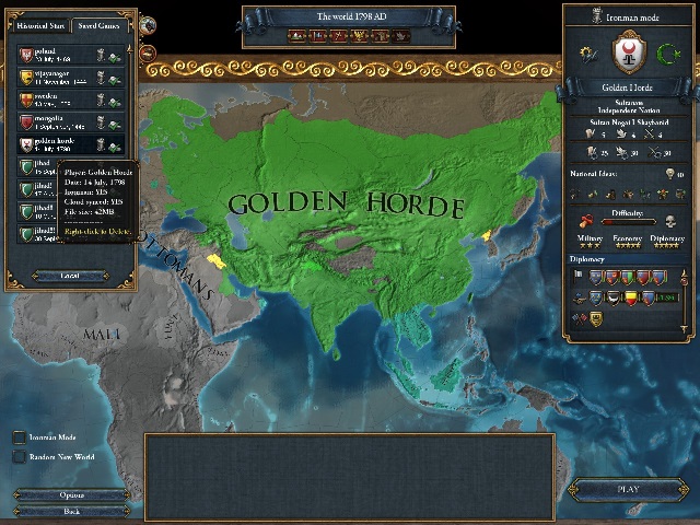 ・・・・・・武力征服が可能な1.6バランスなら楽勝ぞ! ワシはこの時たしかにそう思っておった。WCを取ったときも反乱祭りなどほんの一時期しか経験せず、Golden Hordeの実績も大帝国の秩序は概ね不安のない状況で達成できたが、まさか今回のプレイがこんなひどい状況になるとはのぅ・・・。