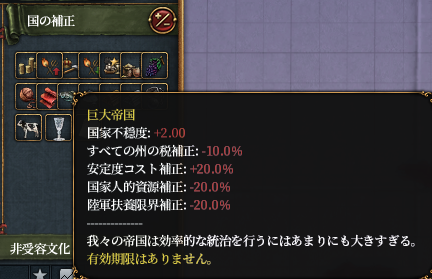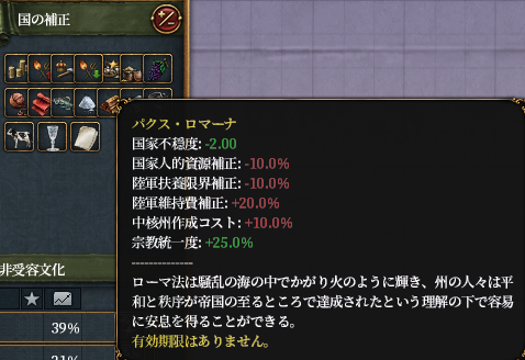 巨大帝国とパクス・ロマーナはローマにしかついていないデバフです。