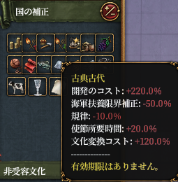 さらに4つのデバフがついています。古典古代は時代の名前なので他国も同条件ですが