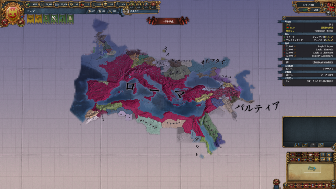 まず東にオリエントの帝国、パルティアが見えたことでライバルができました。