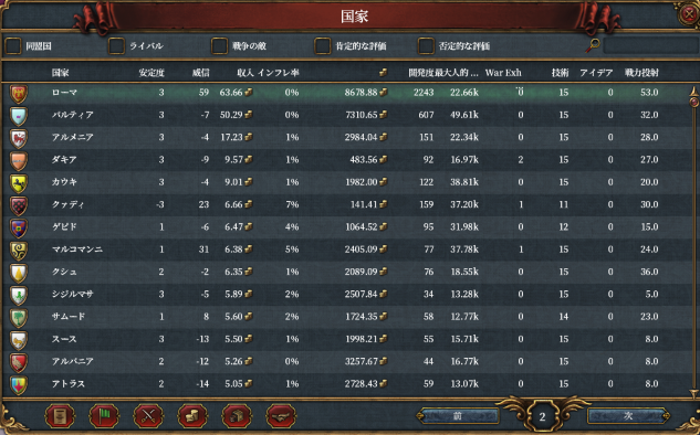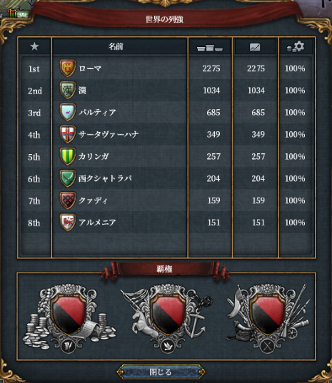 パルティアが列強ポイントをかなり伸ばしています。