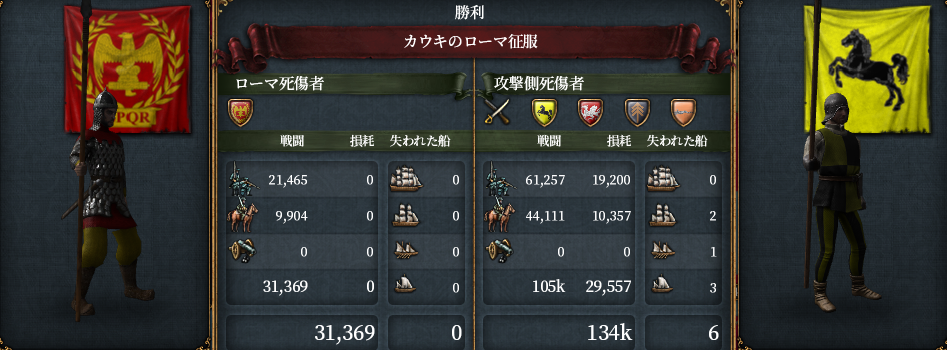 しかも倒しても倒しても湧いてくる蛮族にローマ軍は疲弊していきます。