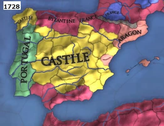 西ローマ帝国から独立した王国に端を発するFrance(フランク王国→西フランク王国→フランス)とPortugal(西ゴート王国→アストゥリアス王国→レオン王国→ポルトガル)に統治権の返還を(武力で)お願いする時代がやってきました。
