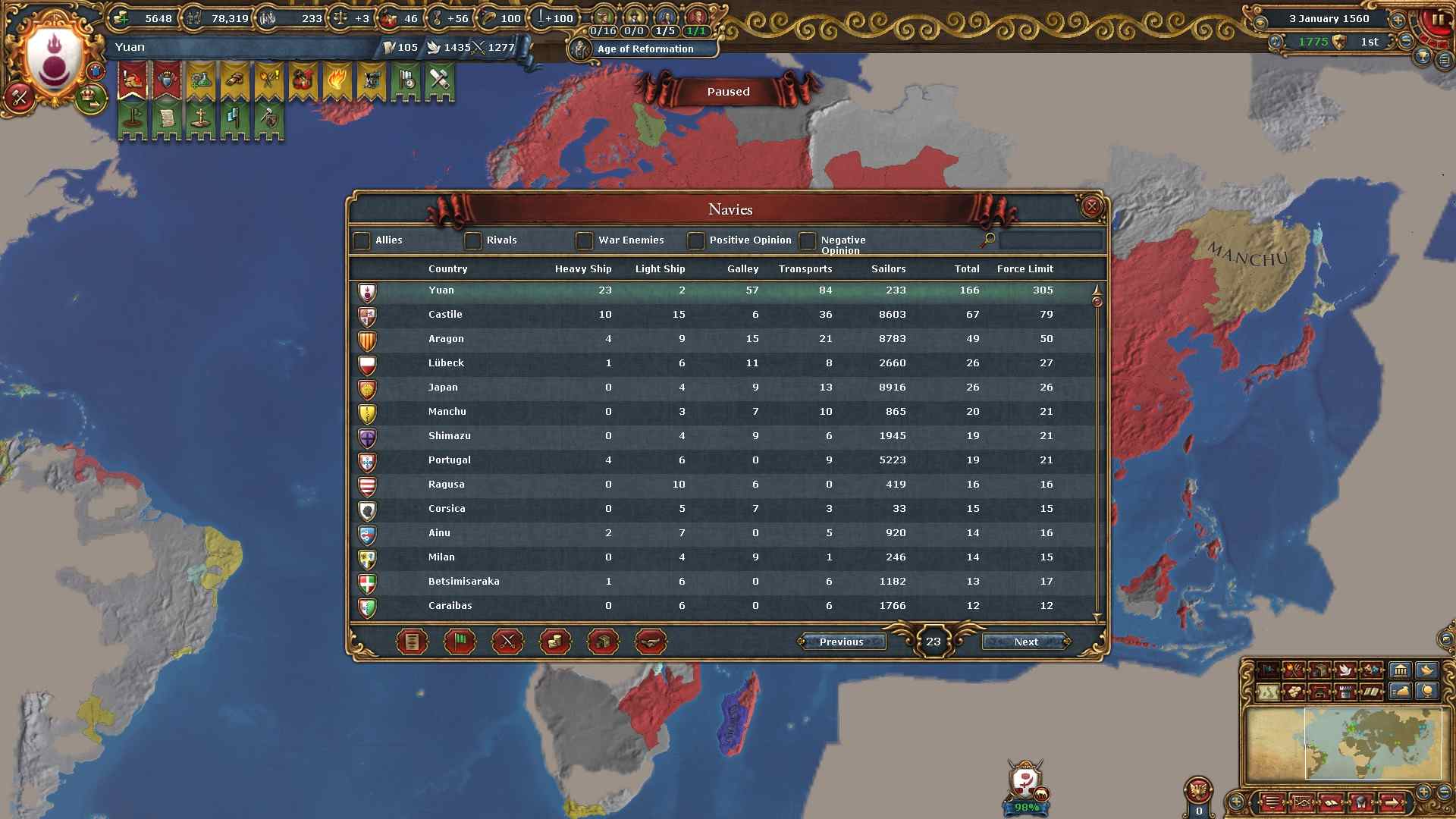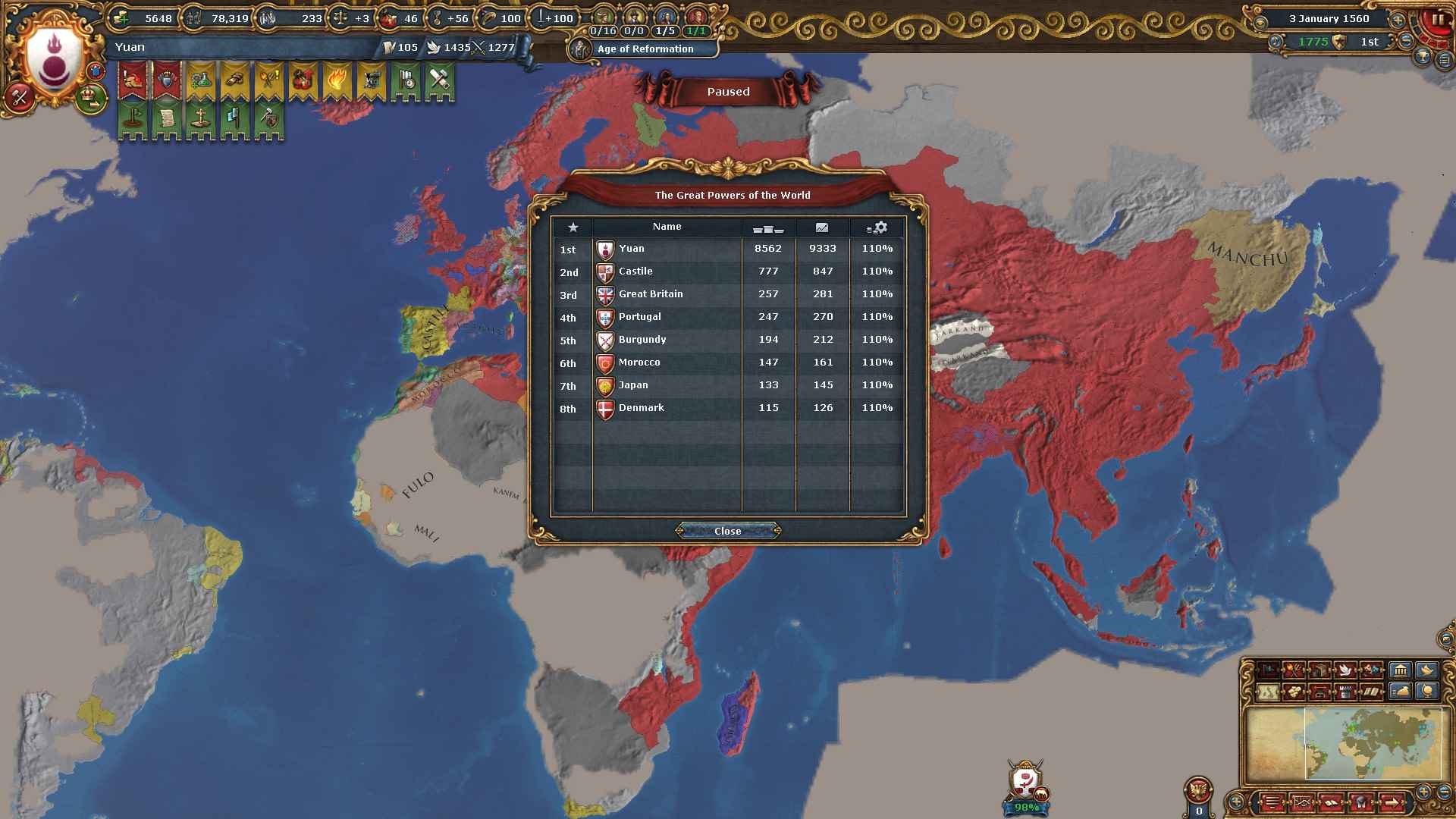 アフリカ以外の旧世界のほとんどを征服していますが、ここでようやく総開発度が10000を超えました。