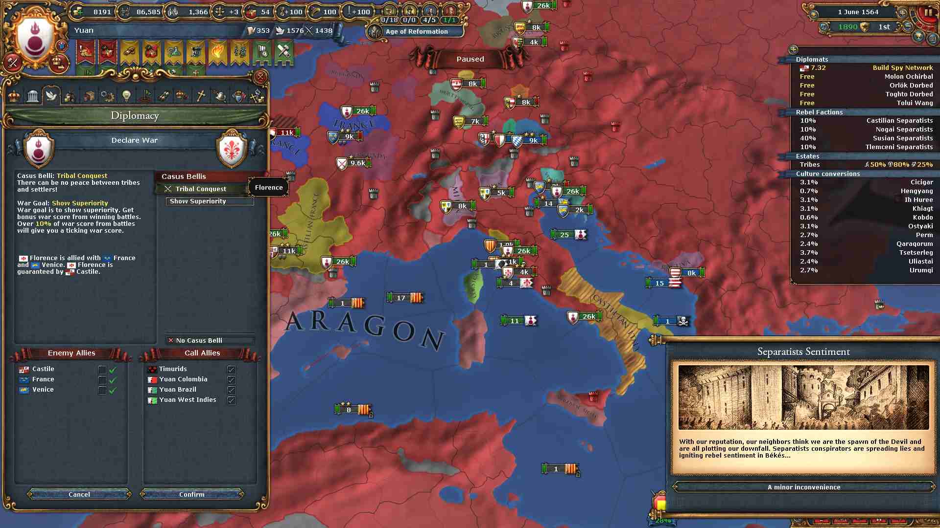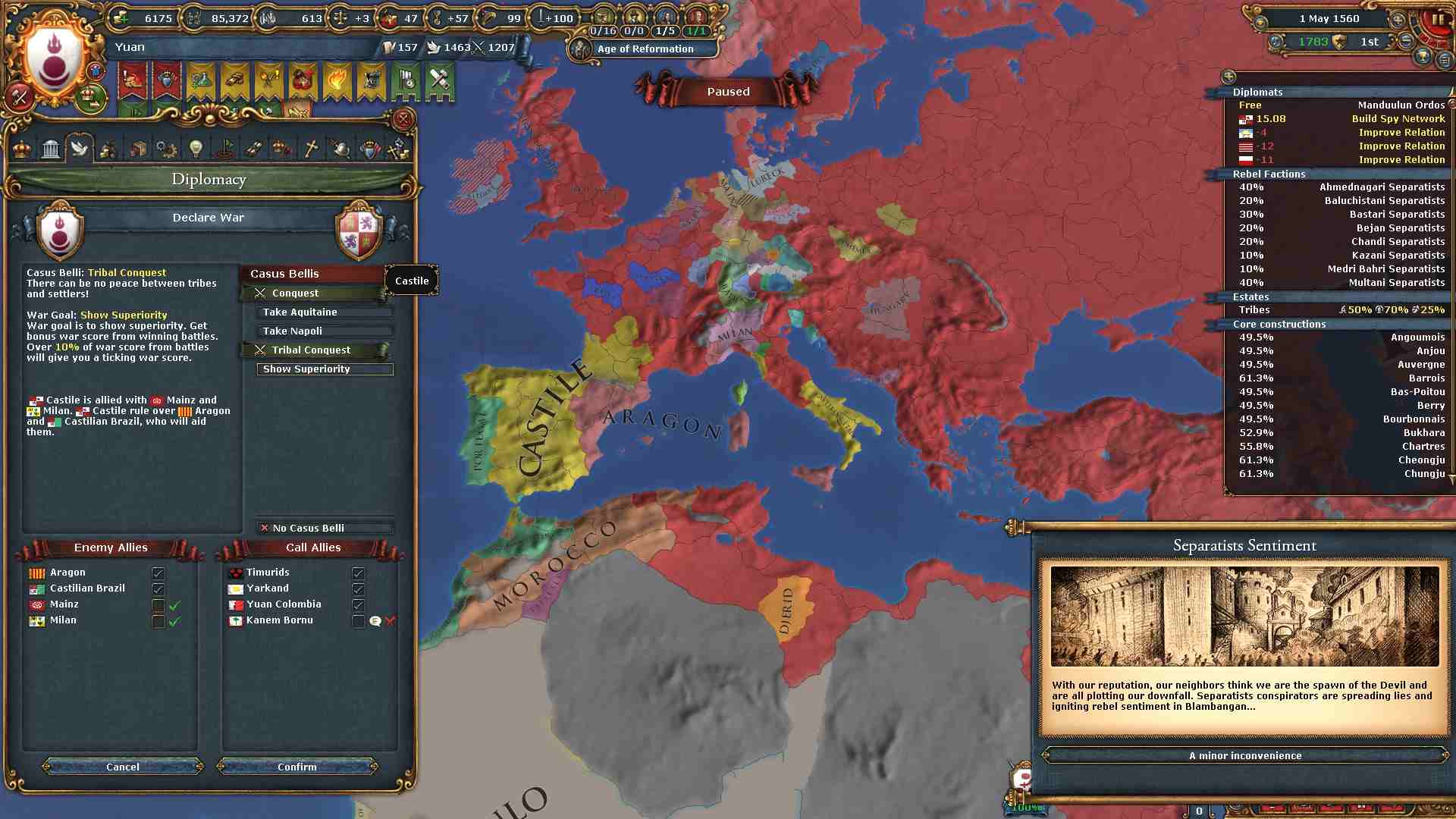 その結果後程アラゴンが独立戦争をカステラにしかけます。