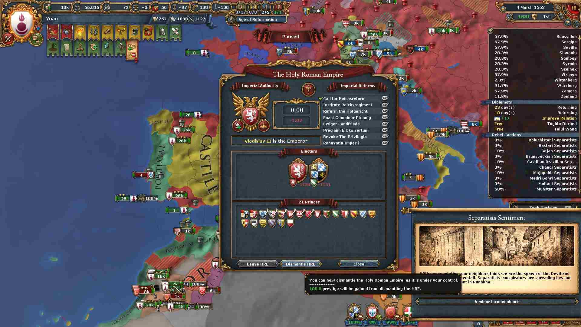 ボヘミア、プファルツ両国の首都を落としたのでHREを解散させました。