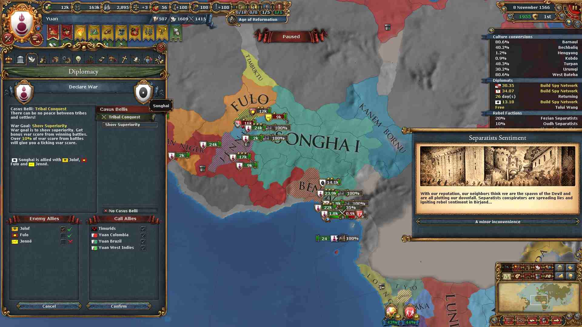 アフリカ最大の国家であるソンガイに攻め込みます。