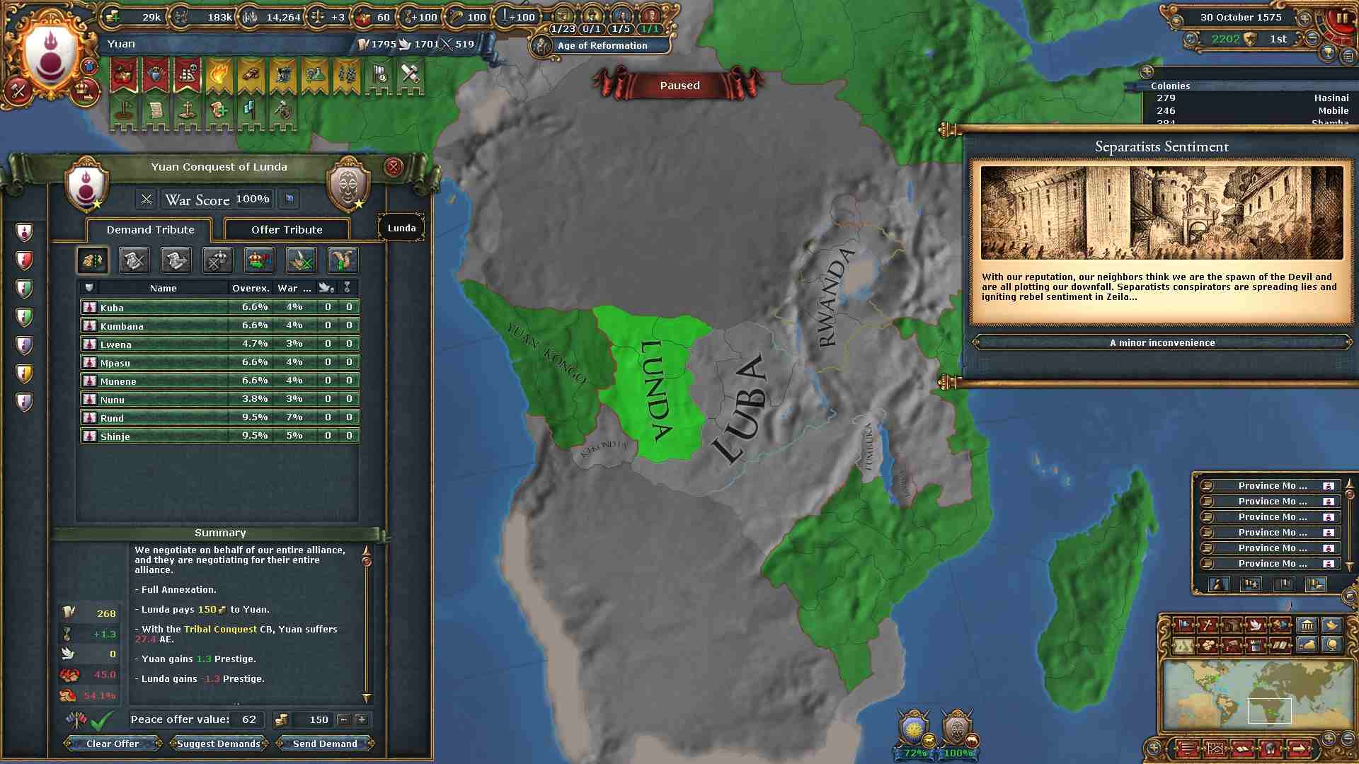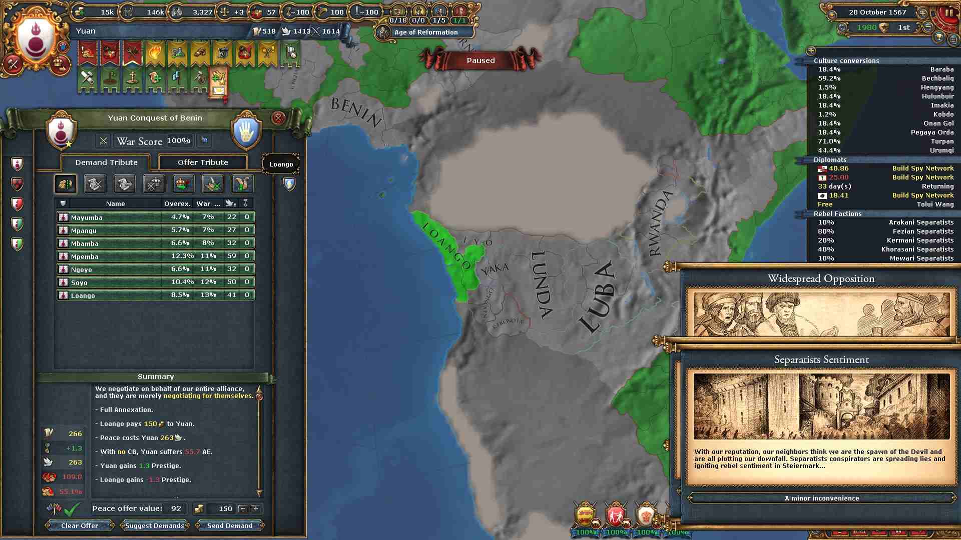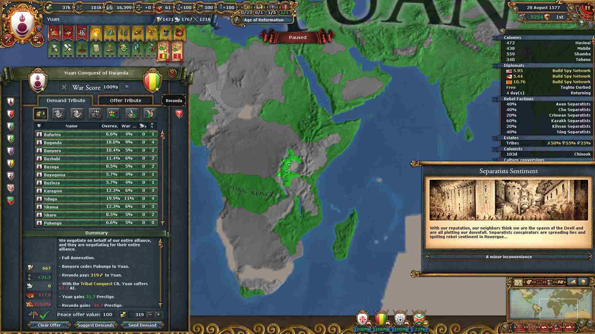 通常の大元プレイでは統治点を略奪によって得られる上、コア化コストも減少するので困ることはありません。
