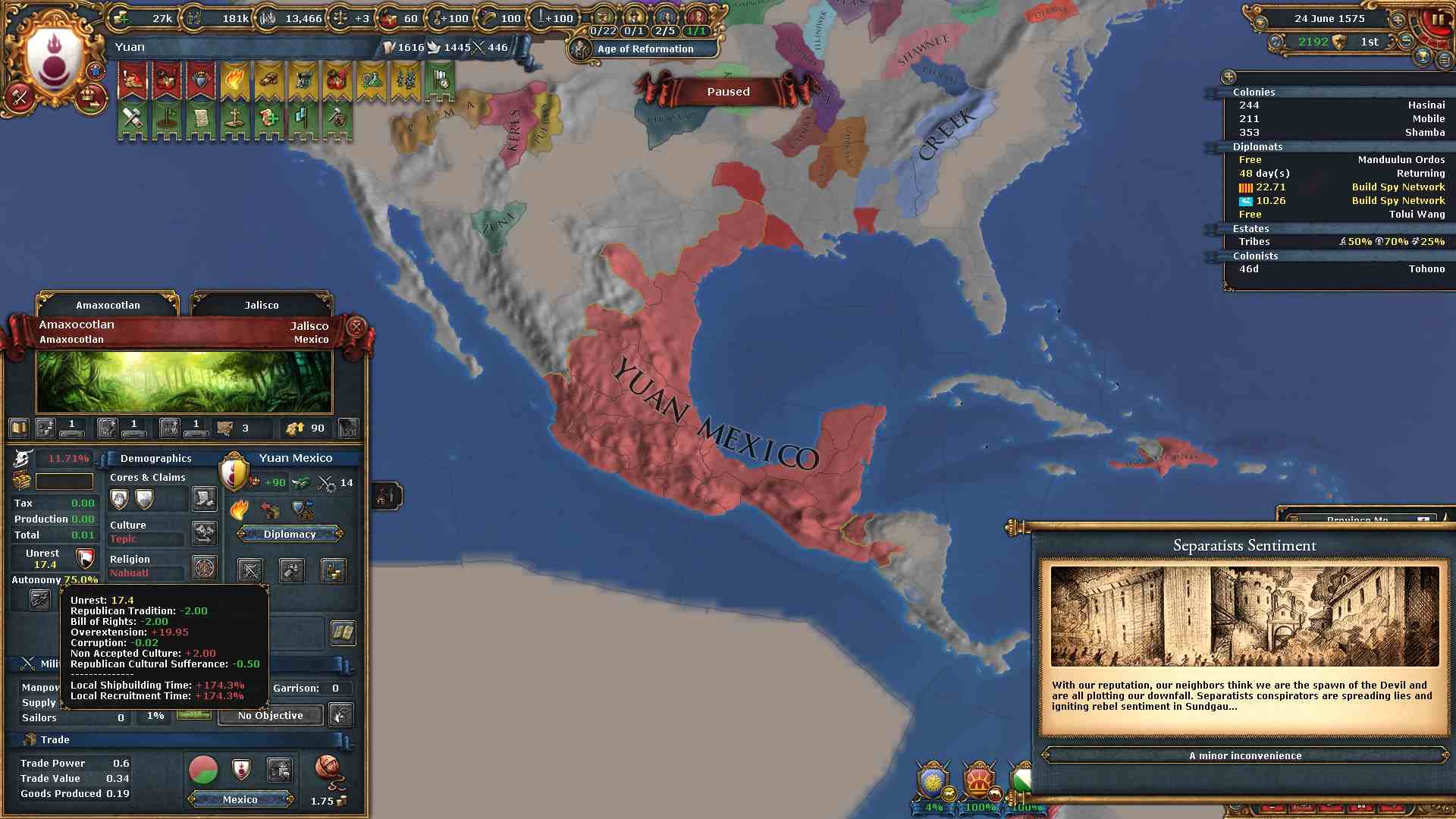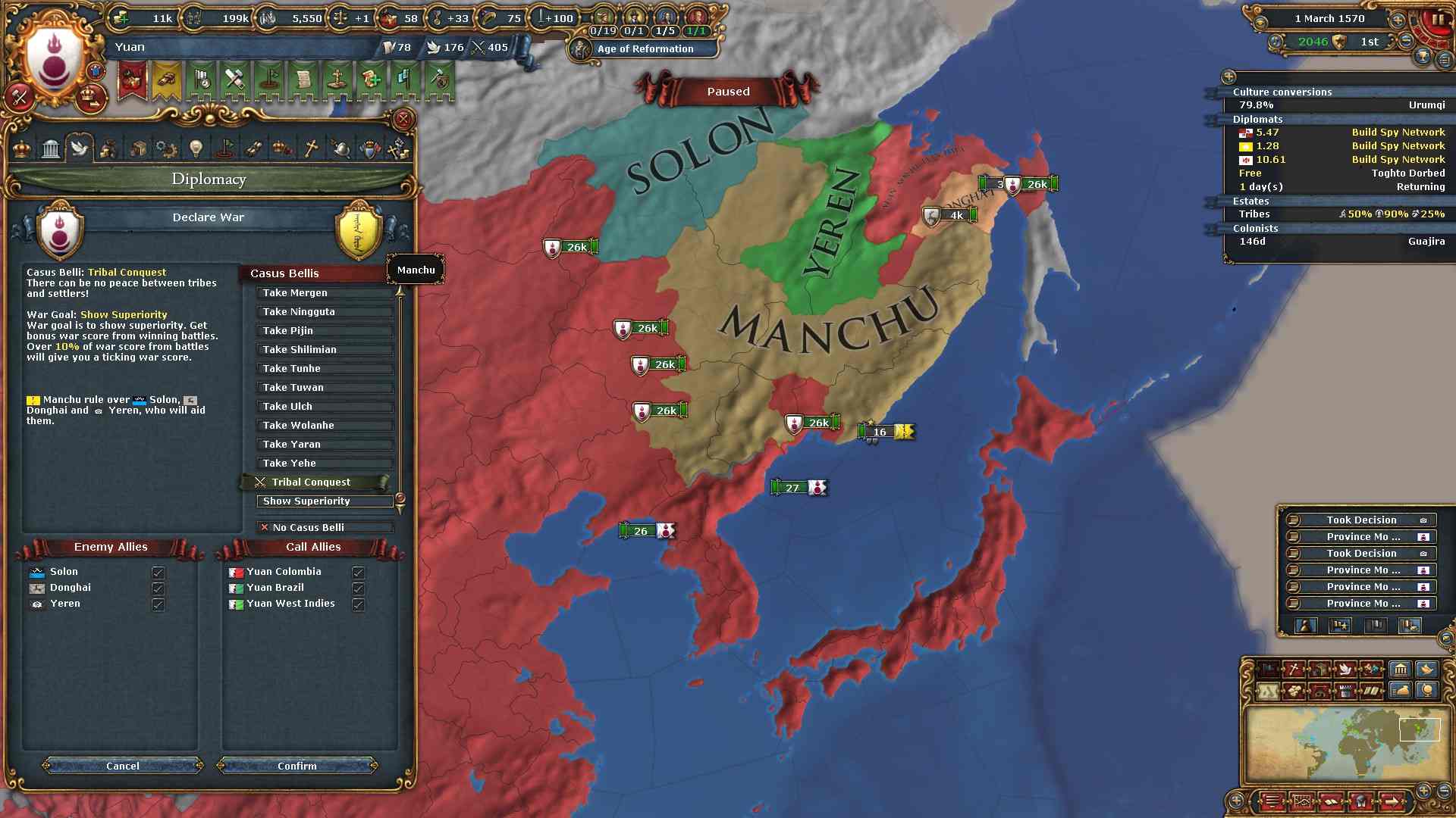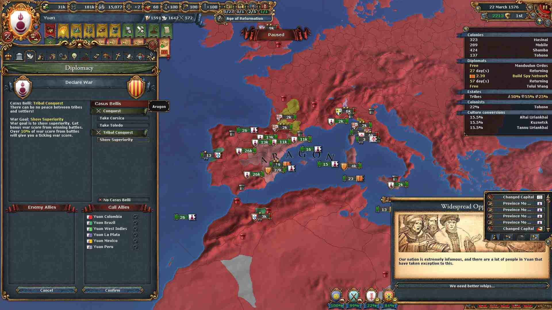 通常の大元プレイでは統治点を略奪によって得られる上、コア化コストも減少するので困ることはありません。