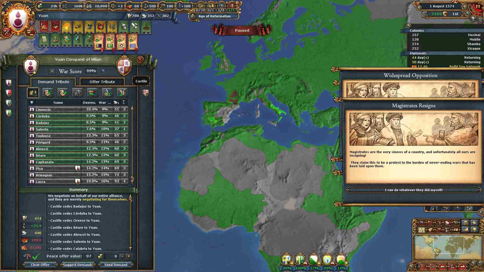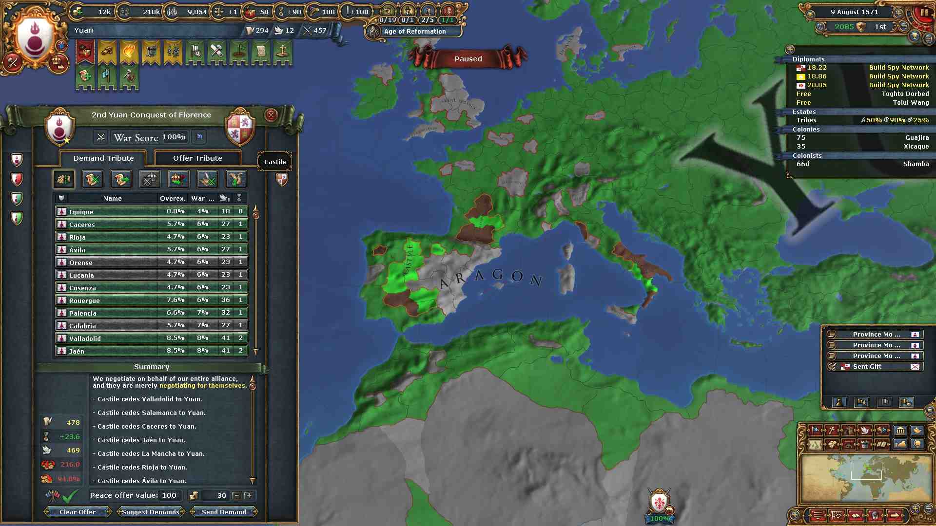 しかし汚職による君主点コストペナルティーがこの頃になると重く圧し掛かってきています。