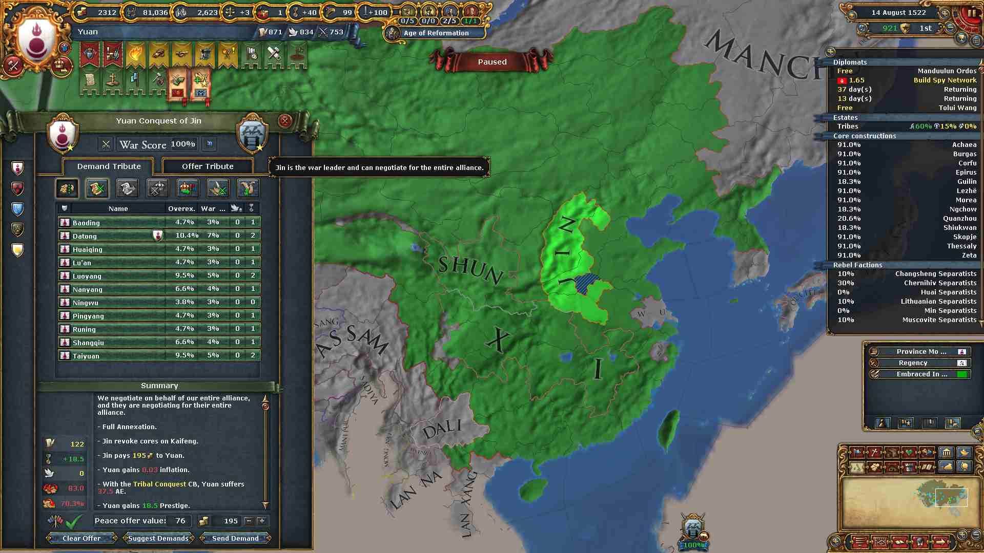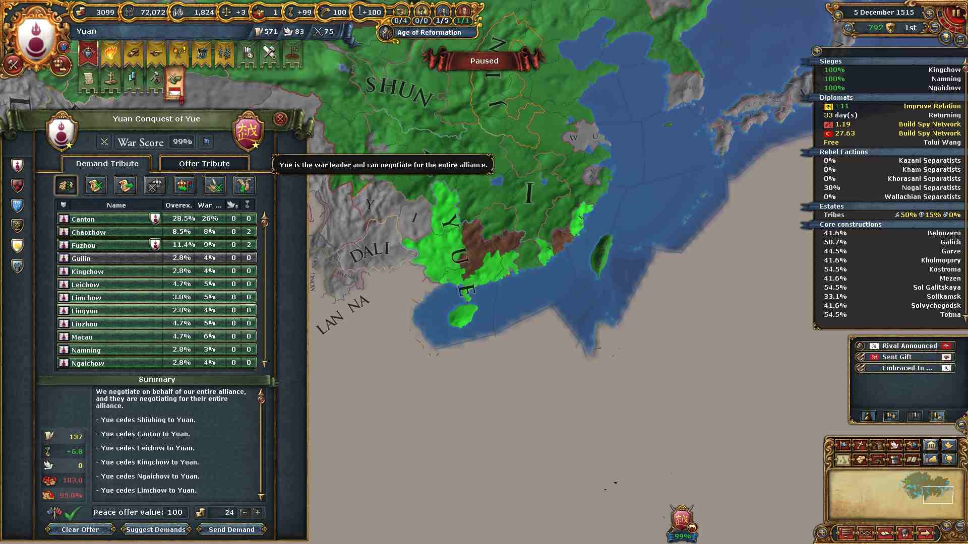 旧属国の併合も進み中華圏の制圧も進んでいます。