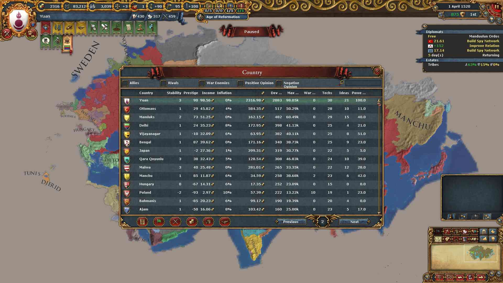 外交アイデアコンプした効果により安定度の低下も3で済んでいます。