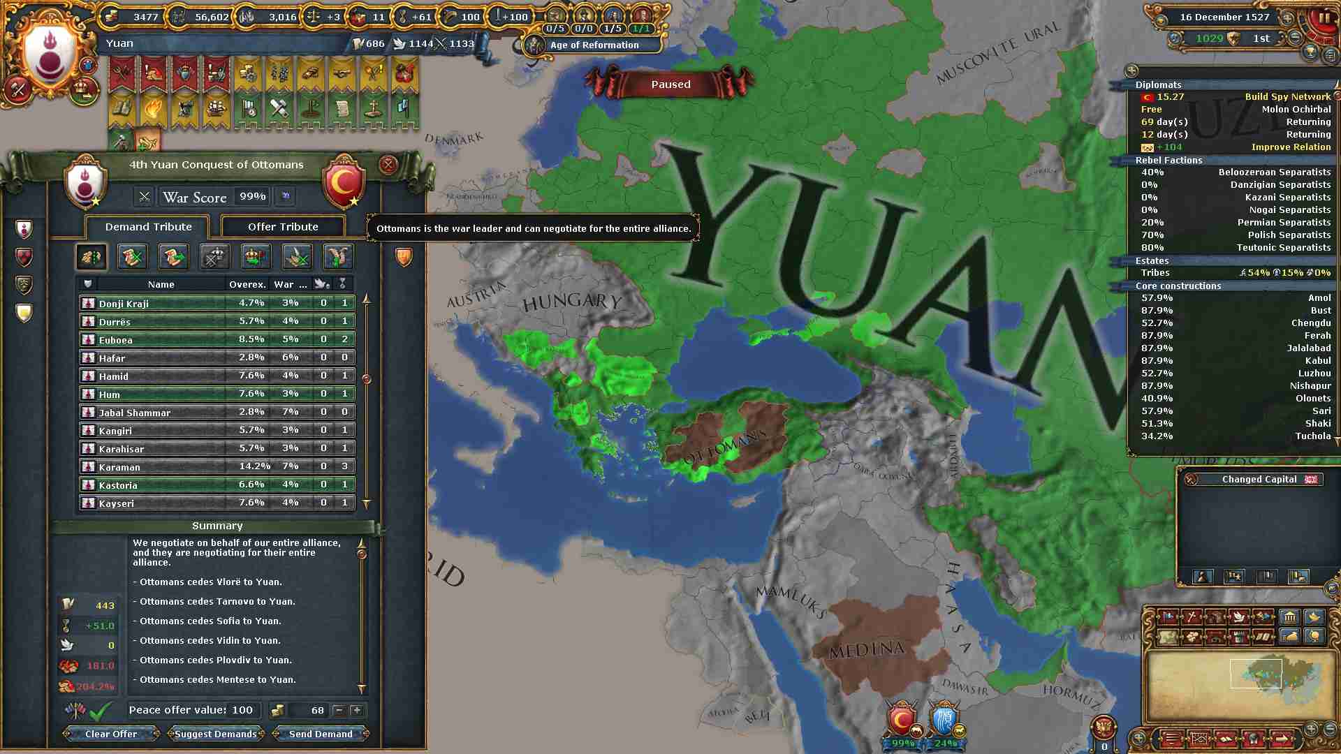 オスマンを内陸国にしてあげました。
