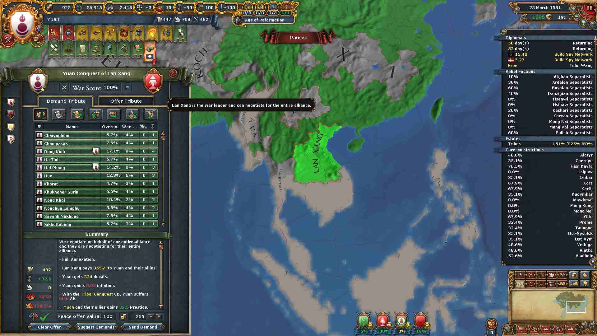 東南アジア一の大国ランサンですが一撃で併合です。