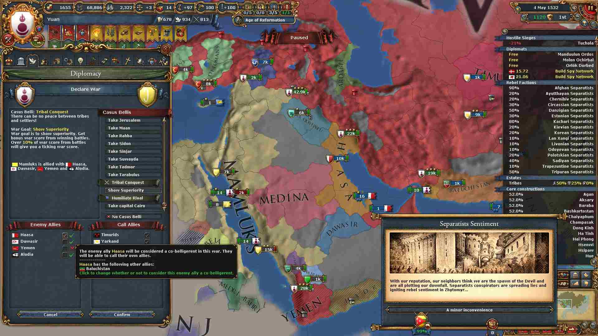 停戦期間を無視し(安定度)、過剰拡大に対処(不穏度)しろというパラド神の啓示に他なりません!