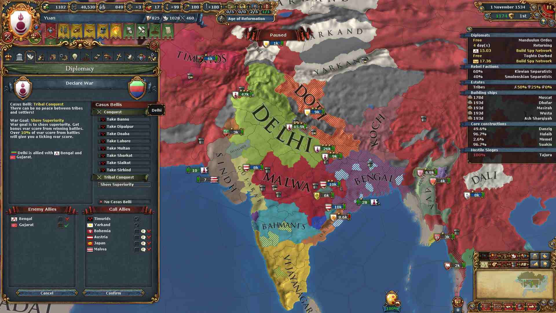 デリーの同盟国ベンガルは既に全土占領済みです。
