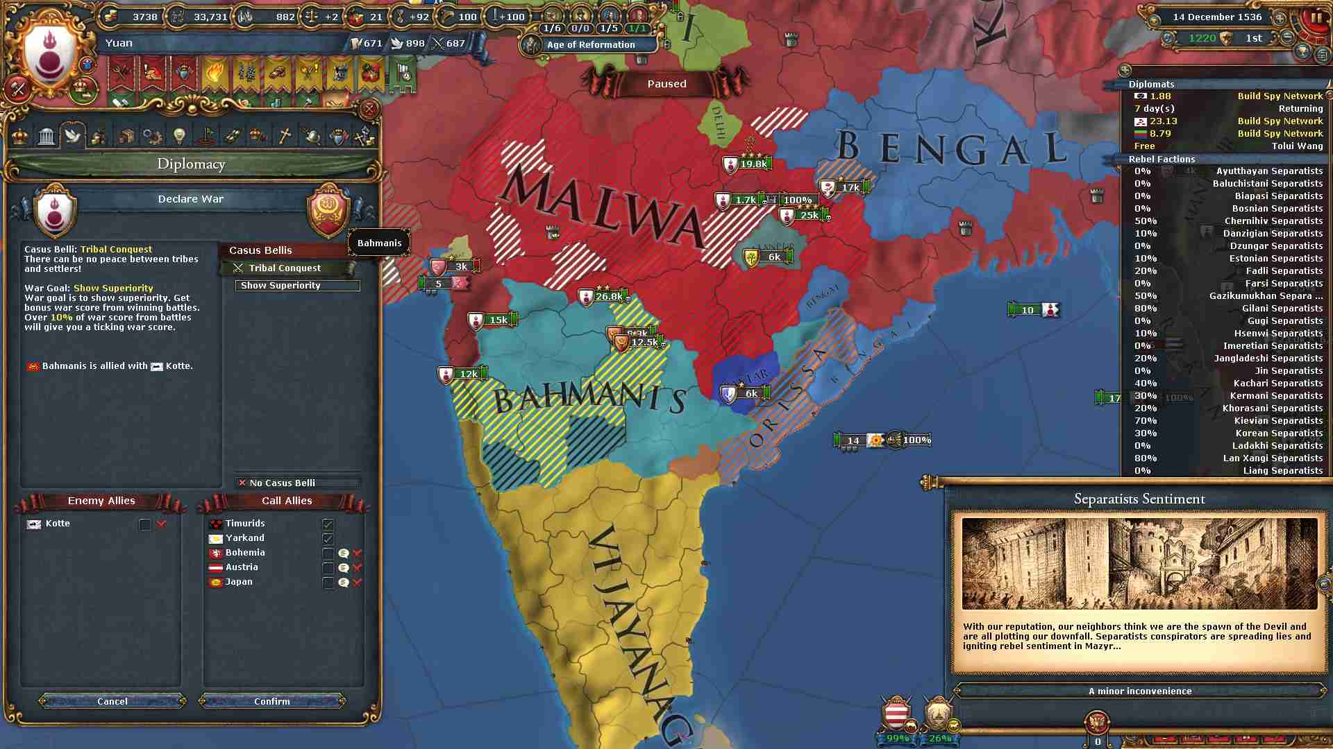 同盟:ベンガル、マルワ、ボヘミア、日本、アヴァ
