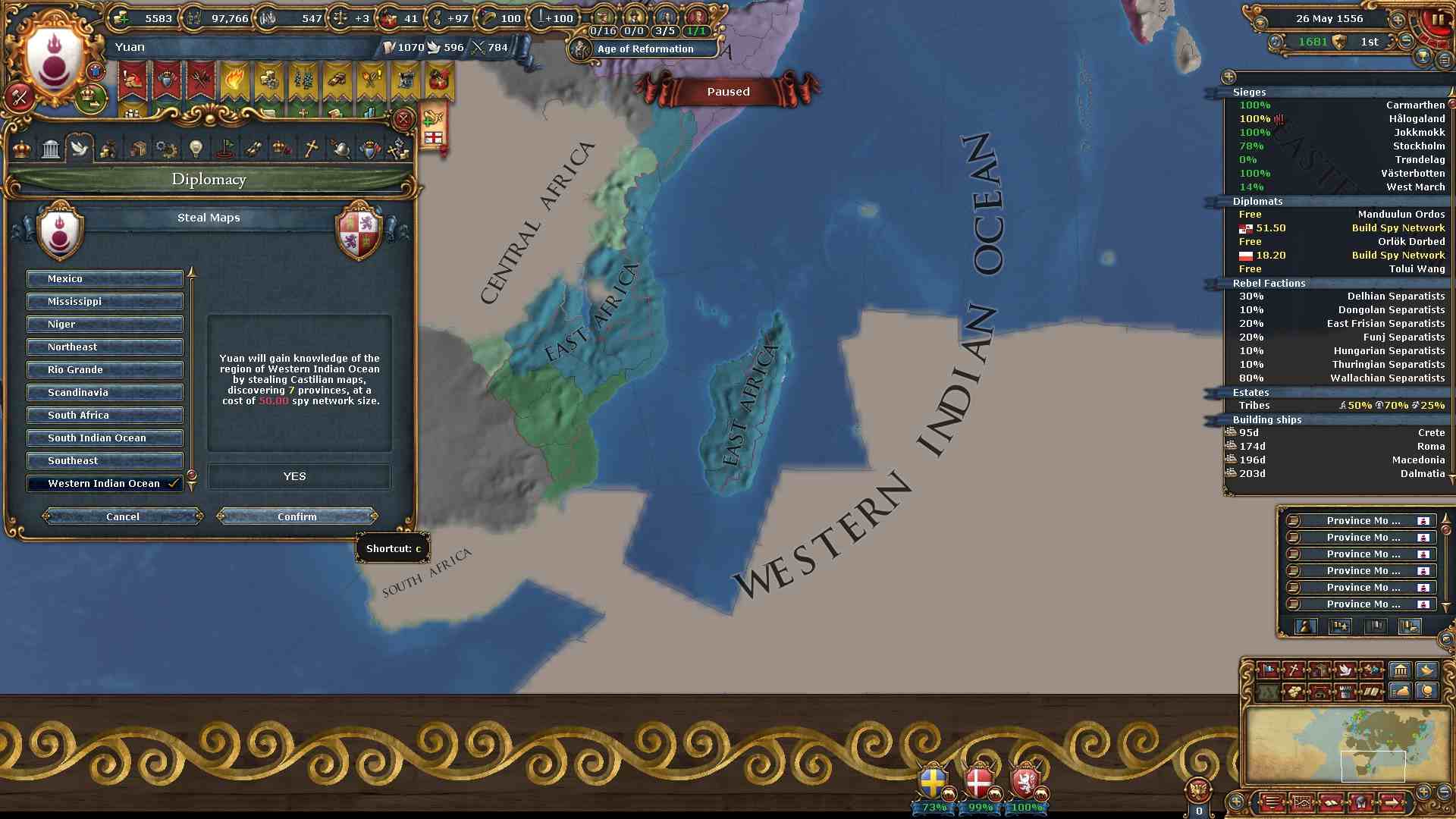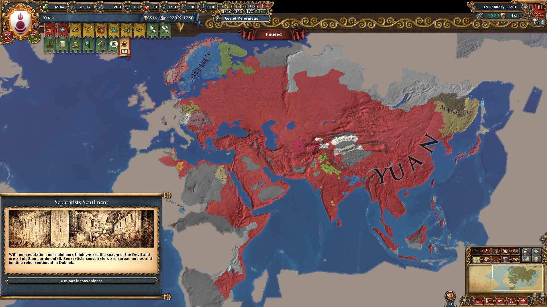 しかし汚職による不穏度減少効果により反乱も最小で済んでいます。