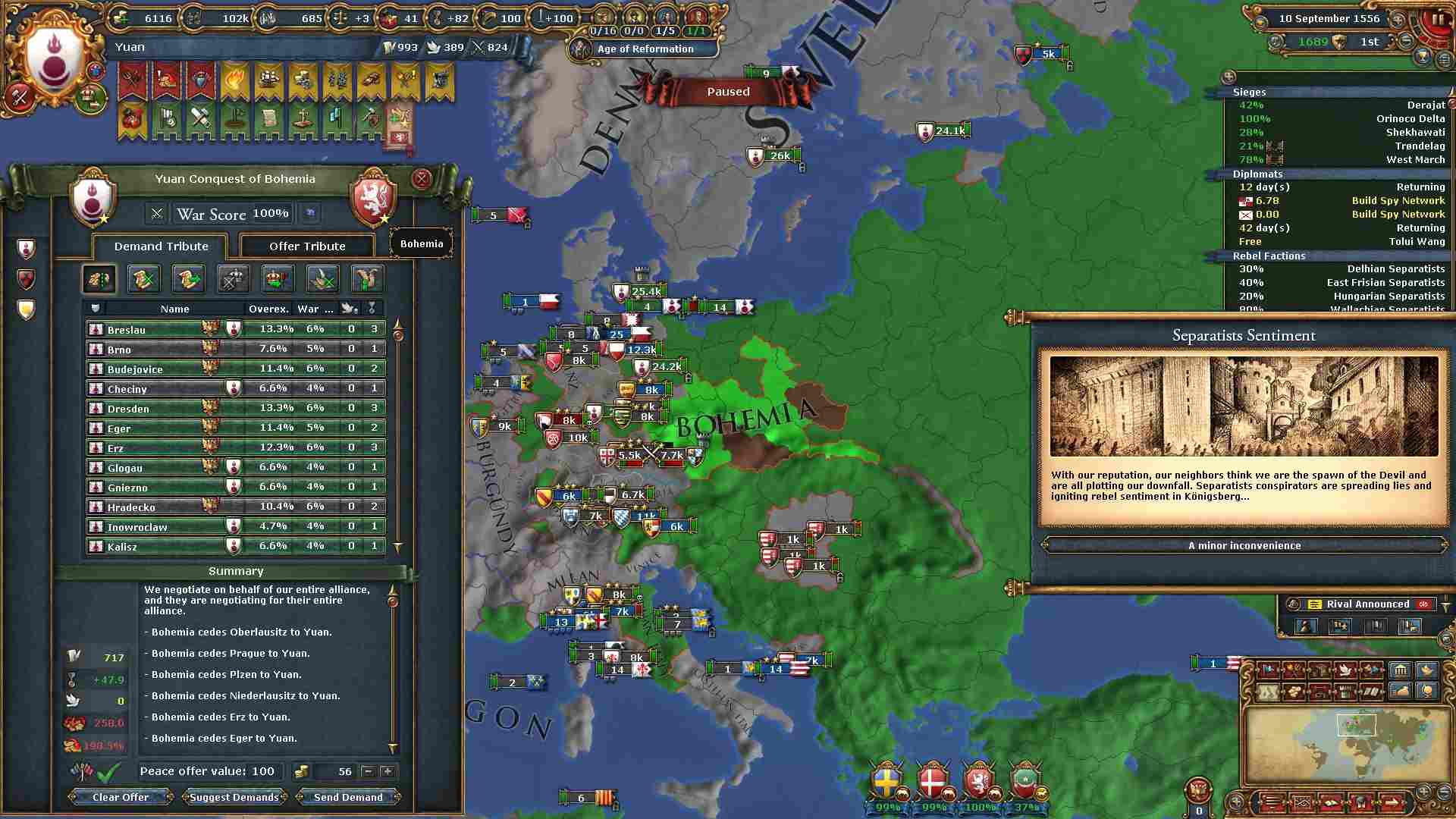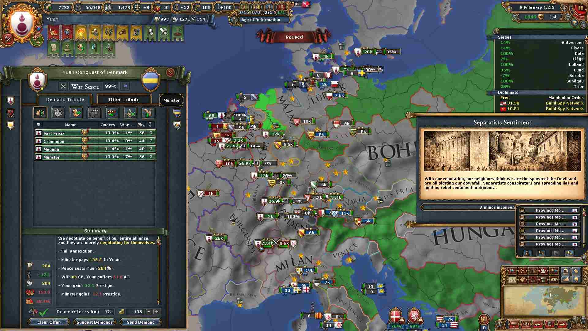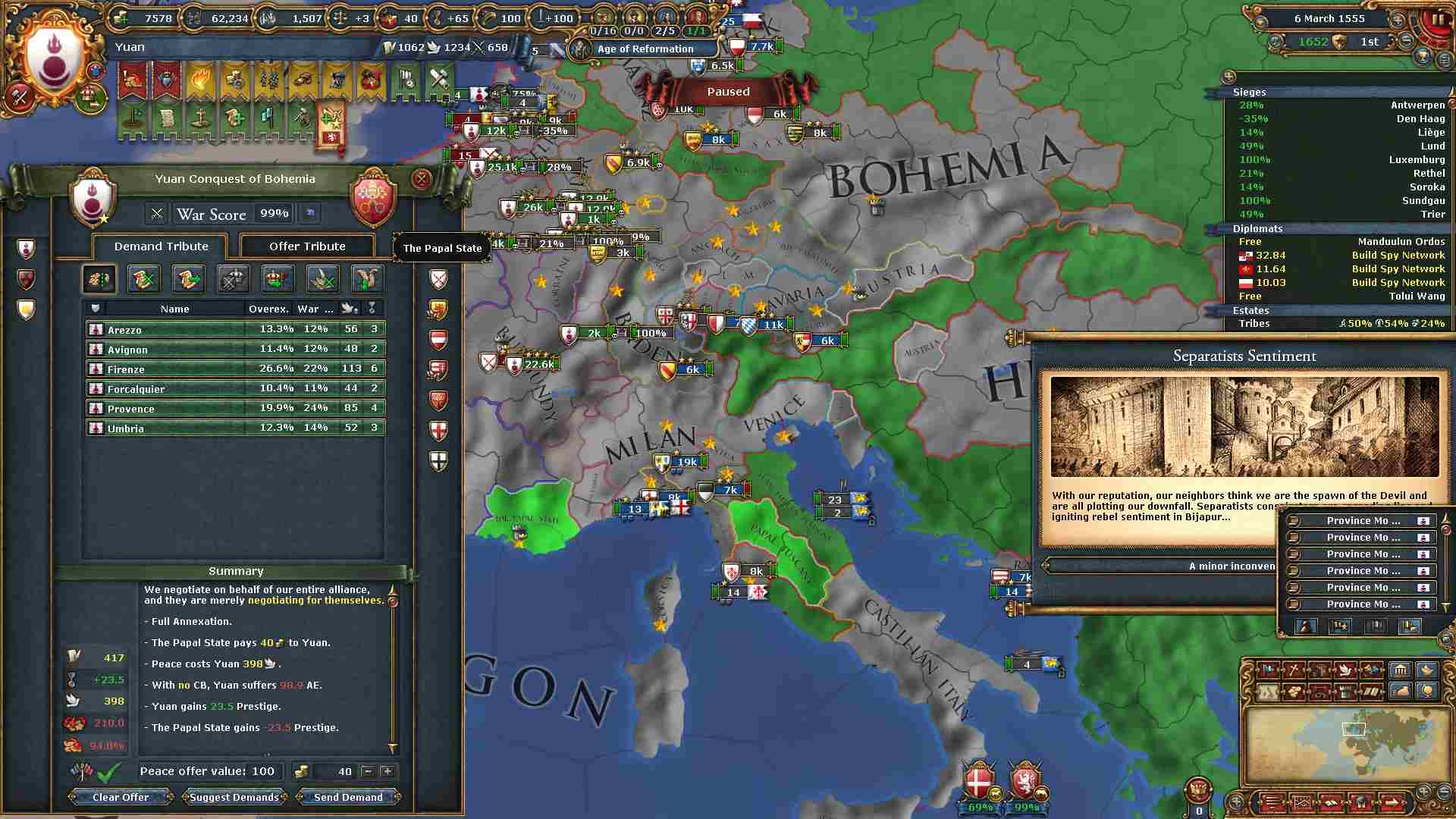 個別和平に大量の外交点がかかりますが略奪のお蔭で全く問題ありません。