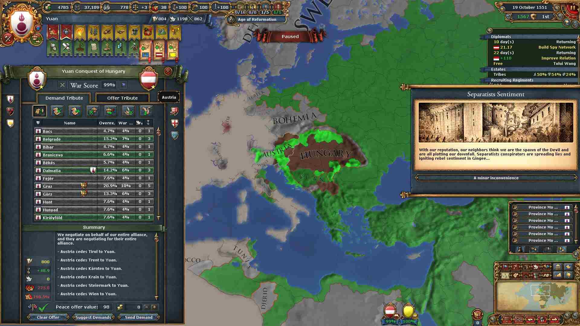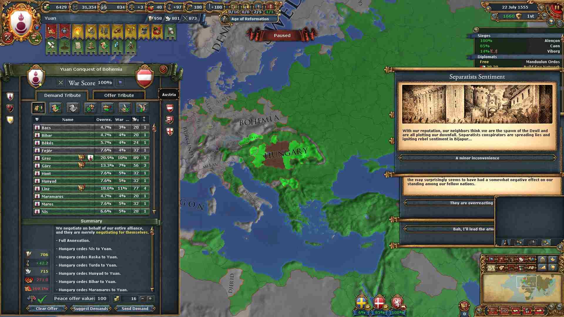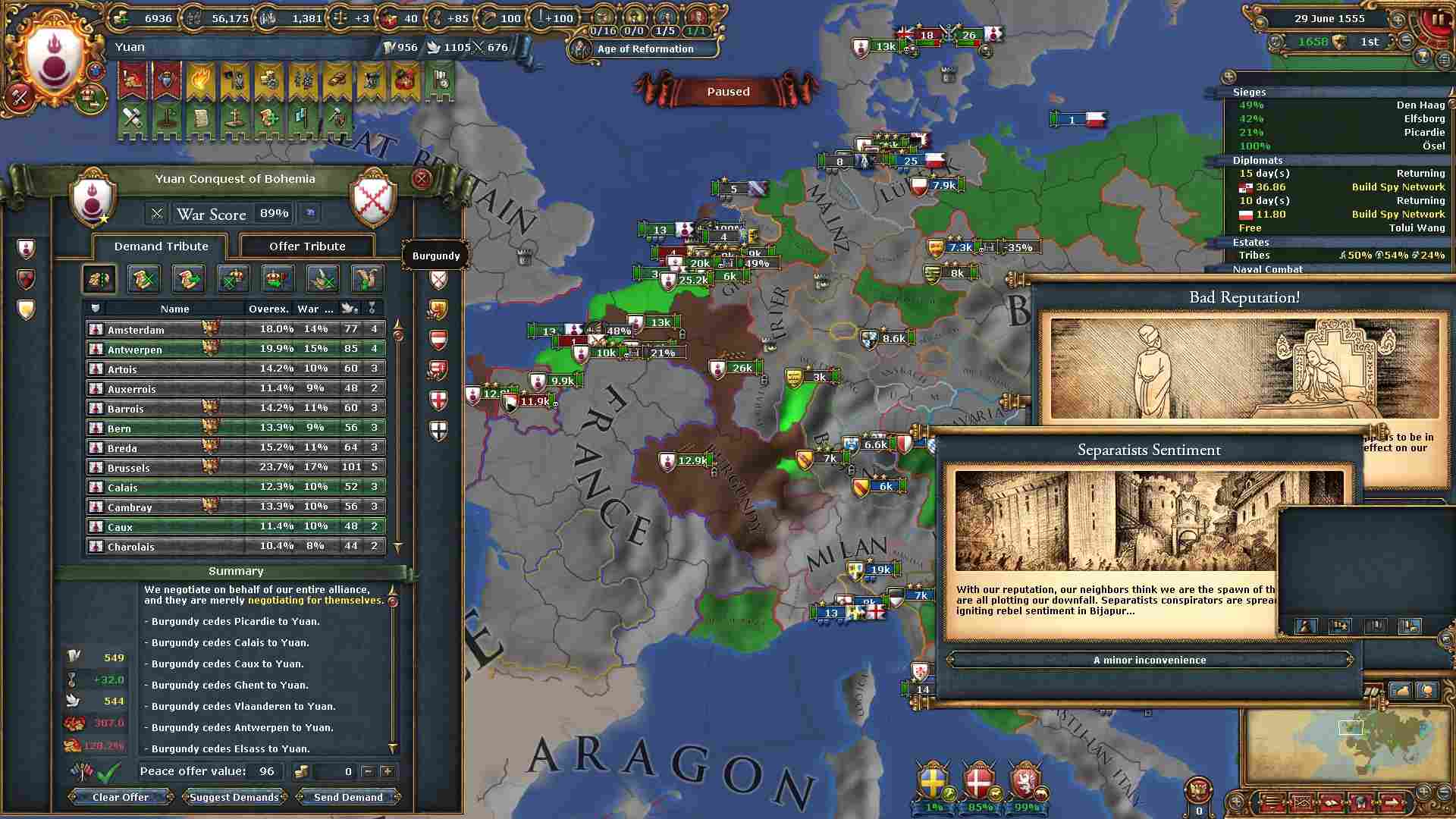 個別和平に大量の外交点がかかりますが略奪のお蔭で全く問題ありません。