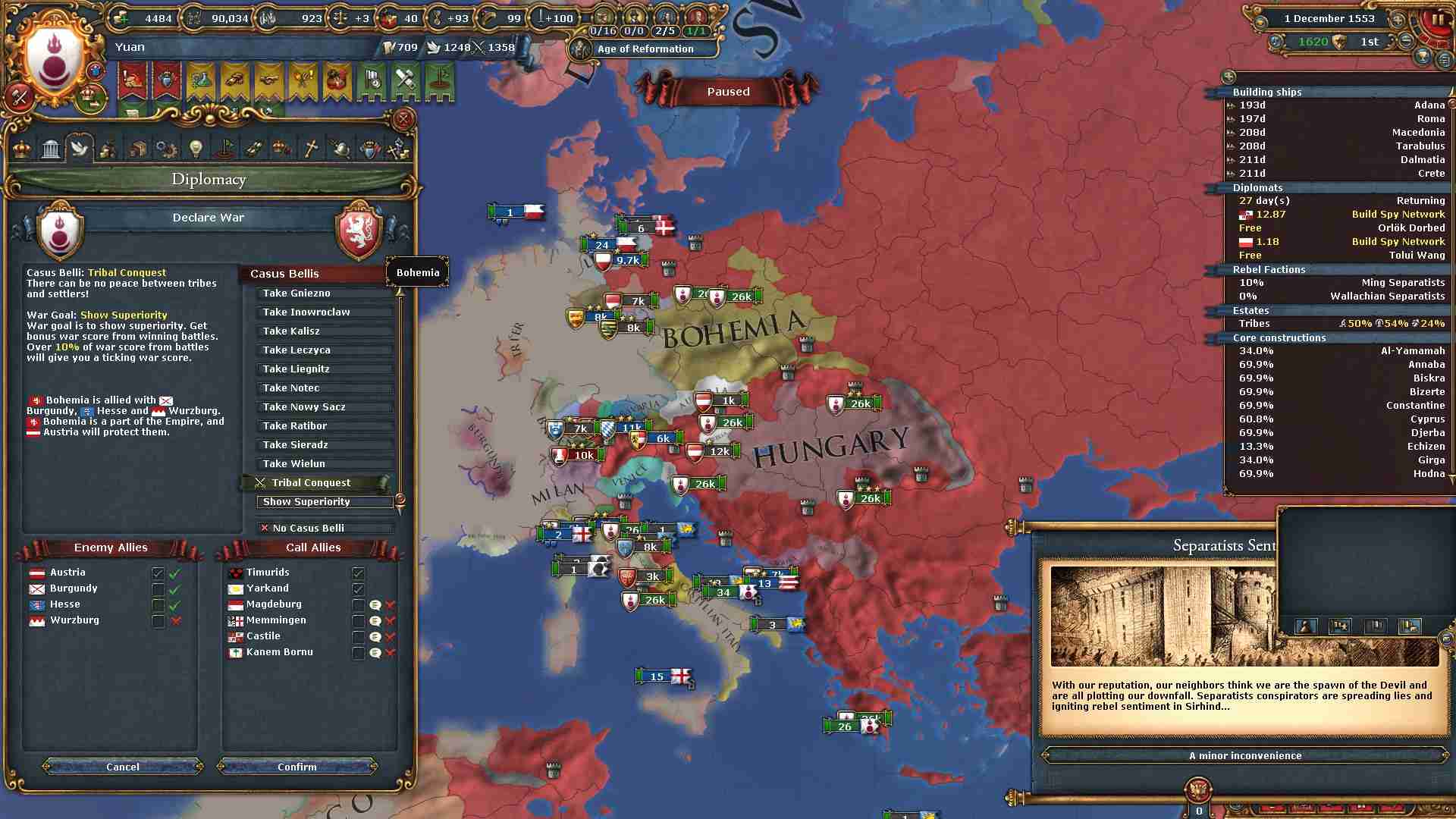 HRE皇帝オーストリアや列強ブルゴーニュも付いてきます。