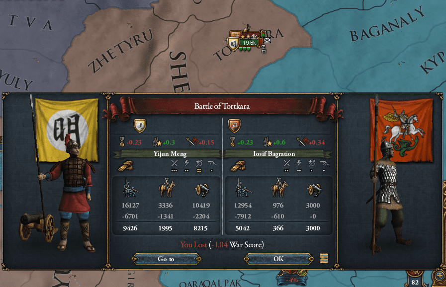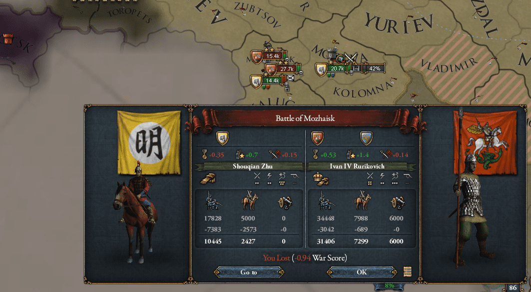 たしかにこの戦争で起きた戦闘は、1k2kの泡沫連隊を吹き飛ばしているのを除けば2勝6敗*12という散々な状態だったが、城塞を優先的に攻略していった結果・・・