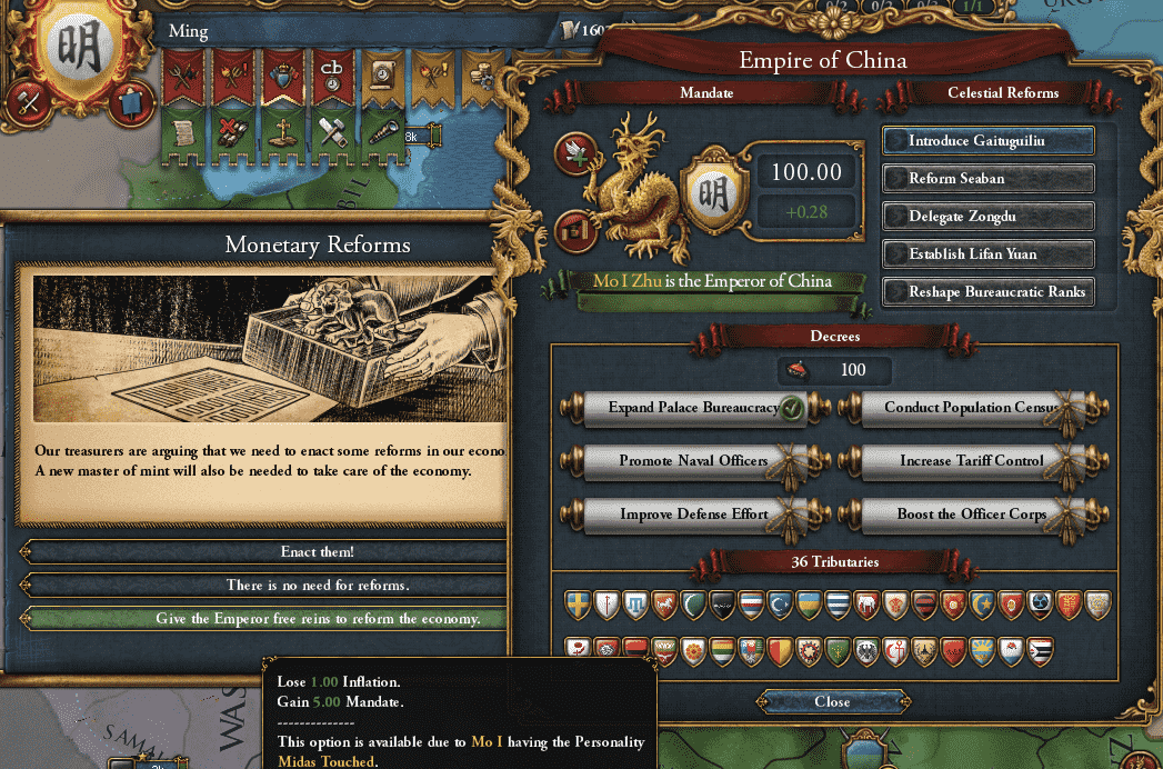 天命はHREのIAと比較して増えやすく、減りやすい。つまり、増えるときには一気に増えるが、考えなしに改革を進めて天命不足に陥ることもあるから、使い方が難しいのじゃ。