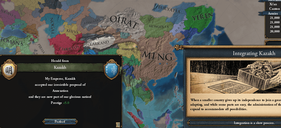 いやいや、このThe Closure of Chinaは大きな目標にも見えるが、実は「明としての最終目標」への第一歩なのじゃ。一旦1490年3月12日まで時を進めるぞ。