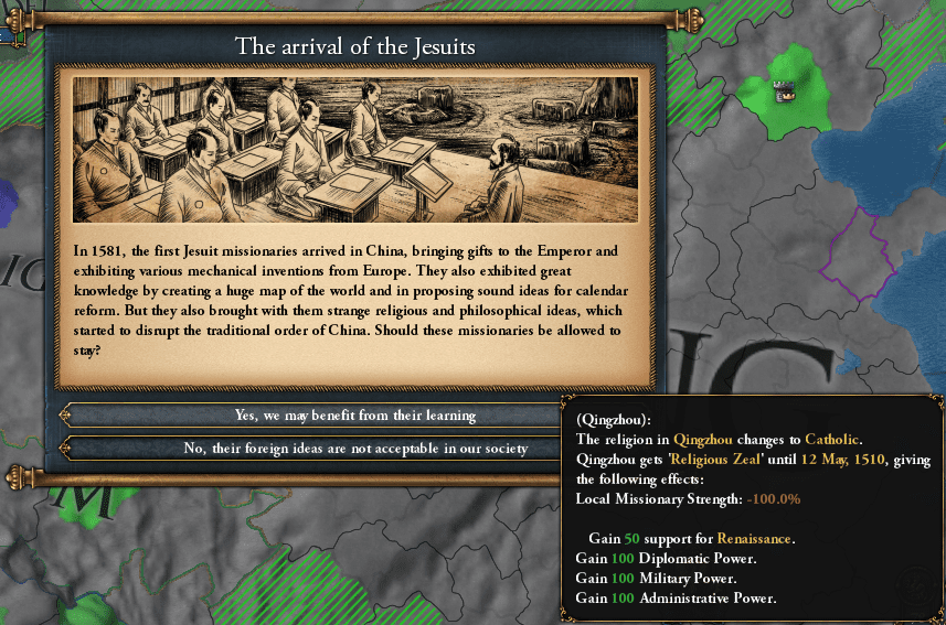 迷っておる。すごーく迷っておる。国教改宗には宗教反乱を使うオーソドックスな方法ともう一つ、イベント・・・Open China系列イベント第四弾を使う方法があるんじゃ。
