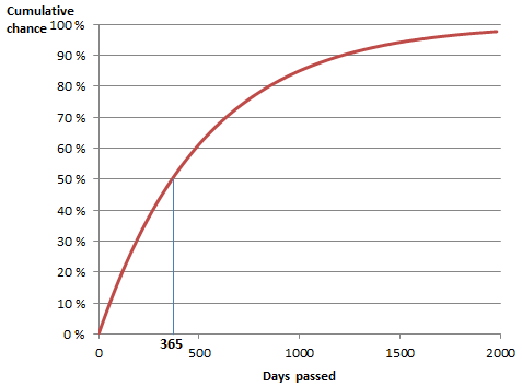 参考:MTTH=365 daysのイベントの発生率(英Wikiより)
