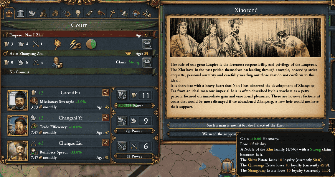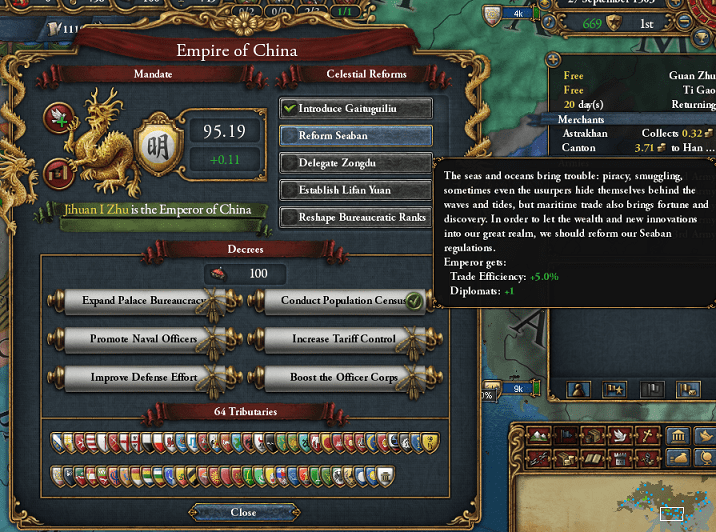 順番が逆になってしもうたが、嘉皇后の摂政期間中に最初の改革「改土帰流(Introduce Gaituguiliu)」を通しておる。もうスペースが無いので、中華帝国改革の詳しい説明は次回に回すぞ。