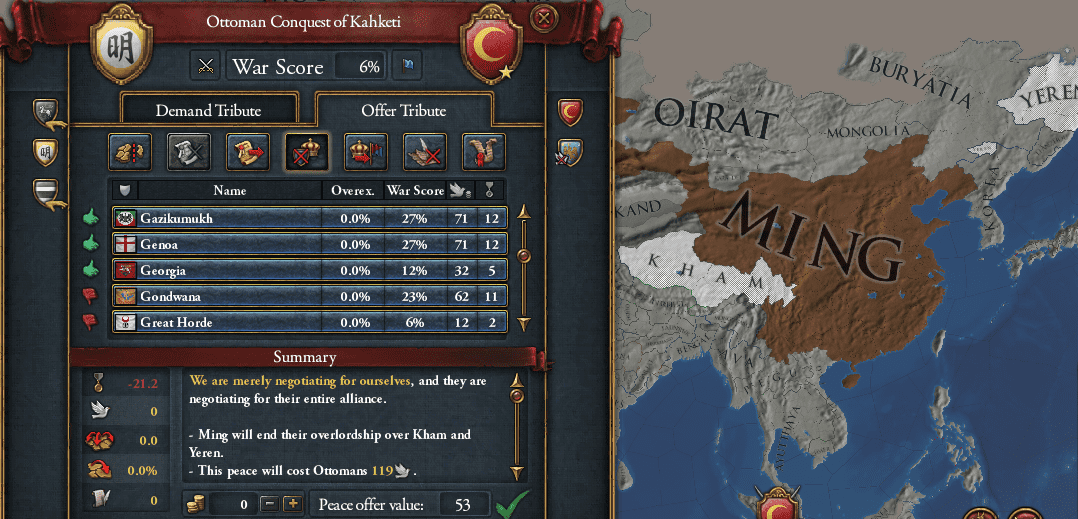 今回、2回ほどオスマンと無関係のところで朝貢国からの参戦要請を拒否しました。