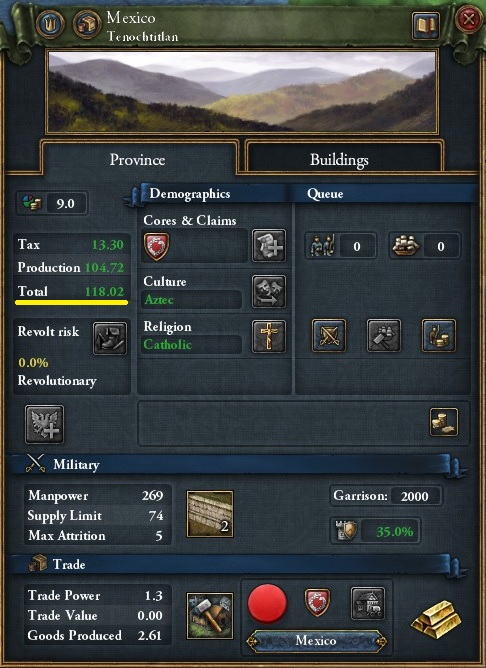 黄金を算出するアステカ領に生産量増加の施設を建造する。