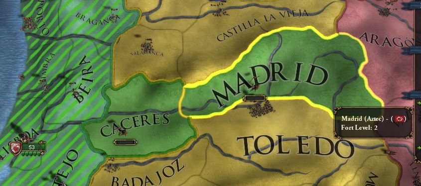 カステラのままなら一戦で奪取できるが、スペイン化している場合、周囲の州を奪った後で割譲させる必要がある。