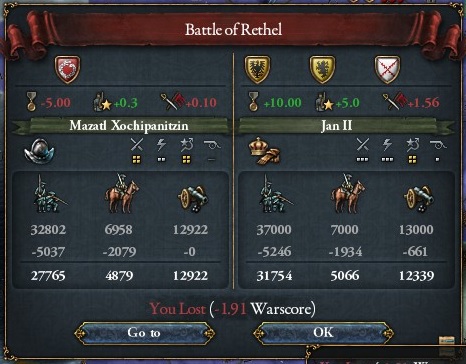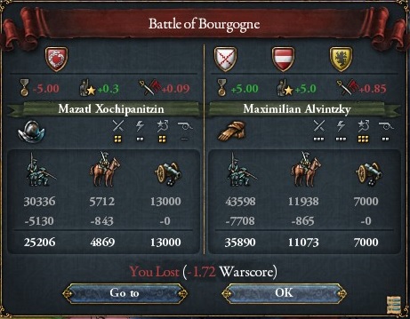 アラゴン・ポルトガルが防衛側に入るので、アステカも防衛側で参戦する。この場合は本気で戦ってアラゴンが負けすぎないように助力する。