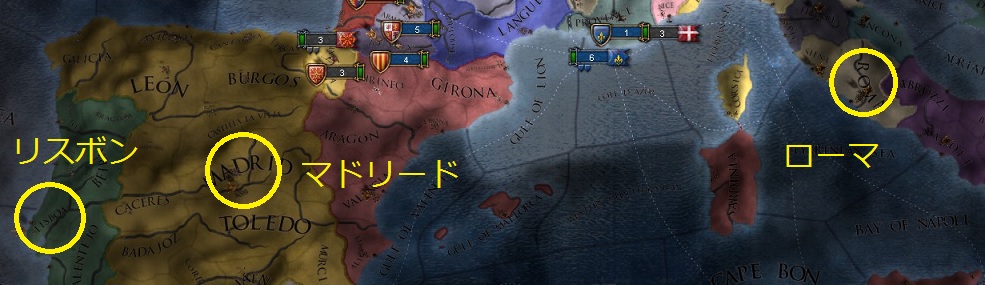ポルトガルの首都。ポルトガルが滅亡や遷都することはほぼないので周囲の州を奪った後割譲させる。